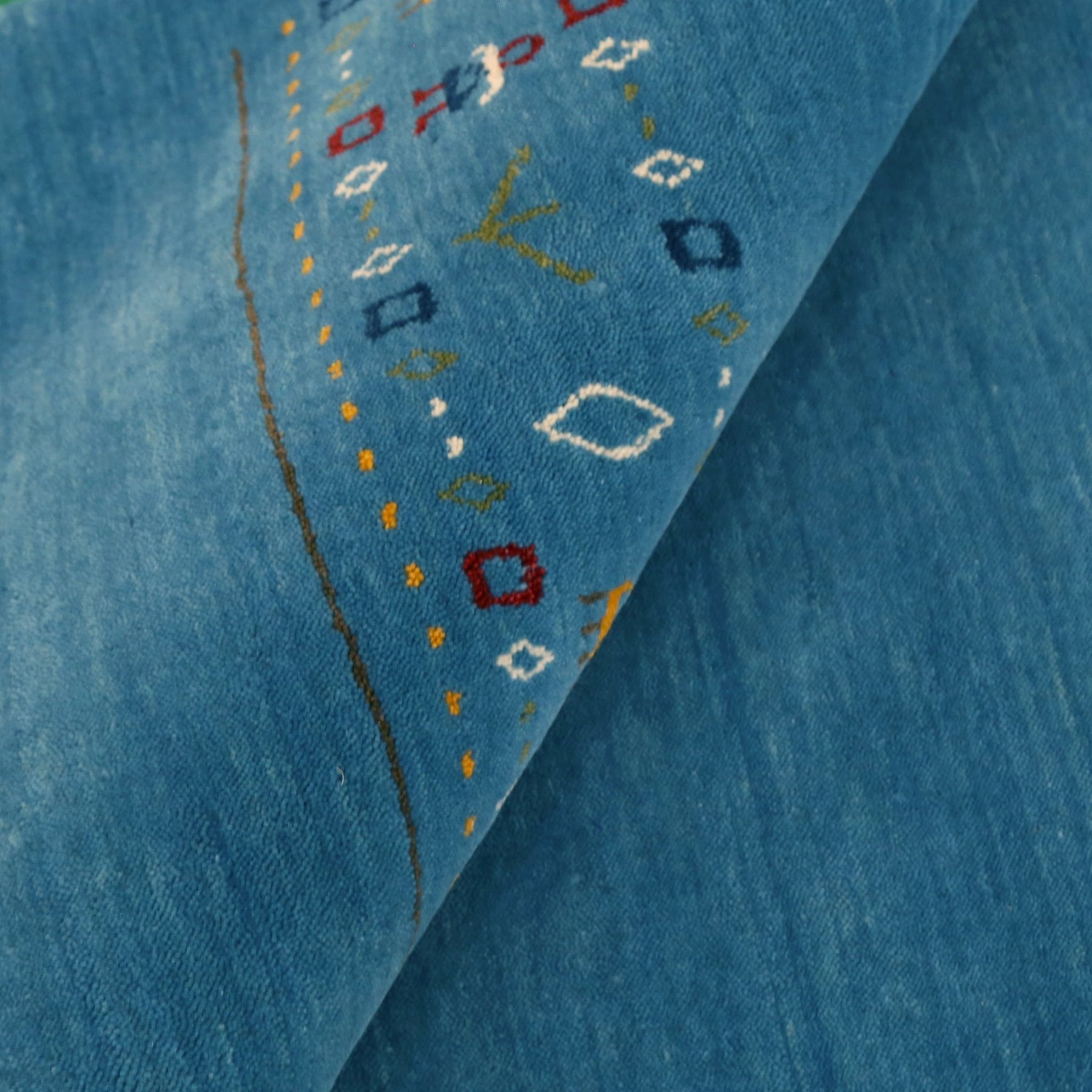 Blue Contemporary Design Hand Loomed Wool Area Rug