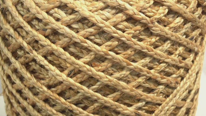 Beautiful stuffed braided pouf from Jute. Wonderful for living rooms, nurseries, kid's rooms, or around the house! The Pouf is made with jute. Lightweight, easy to move, and the size is as big as a single-seat couch.