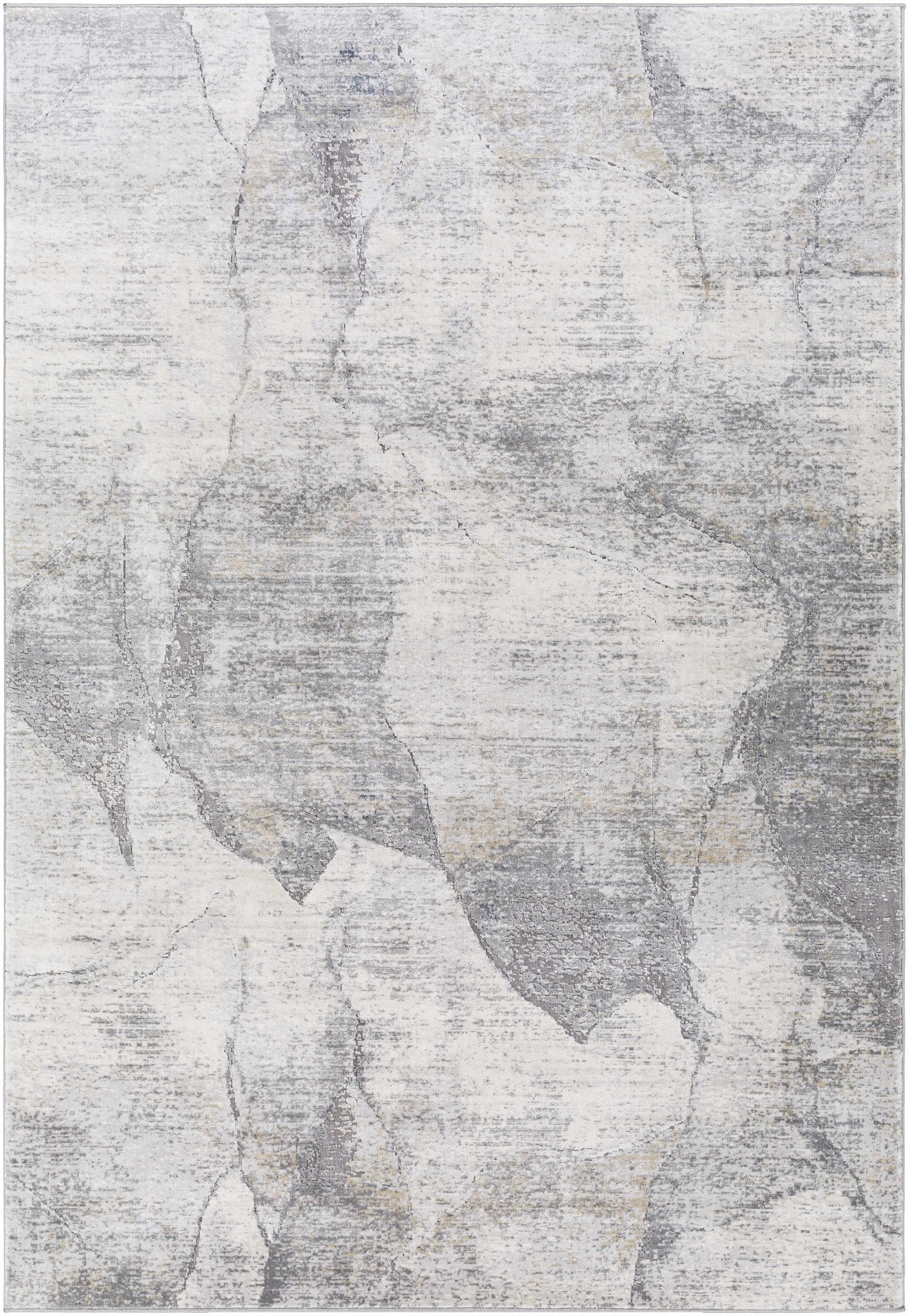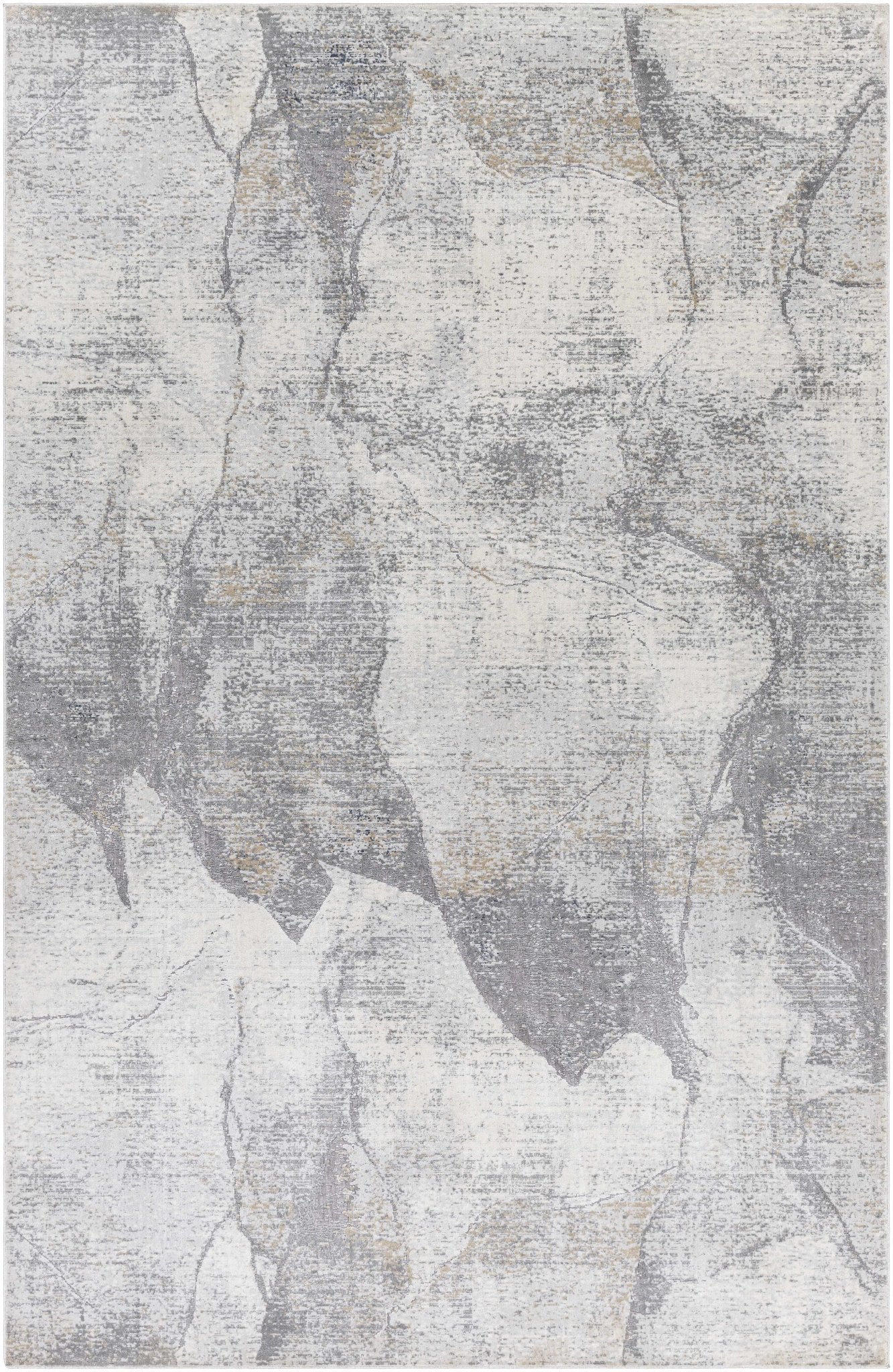 Contemporary Abstract Gray And Ivory Machine Woven Rug