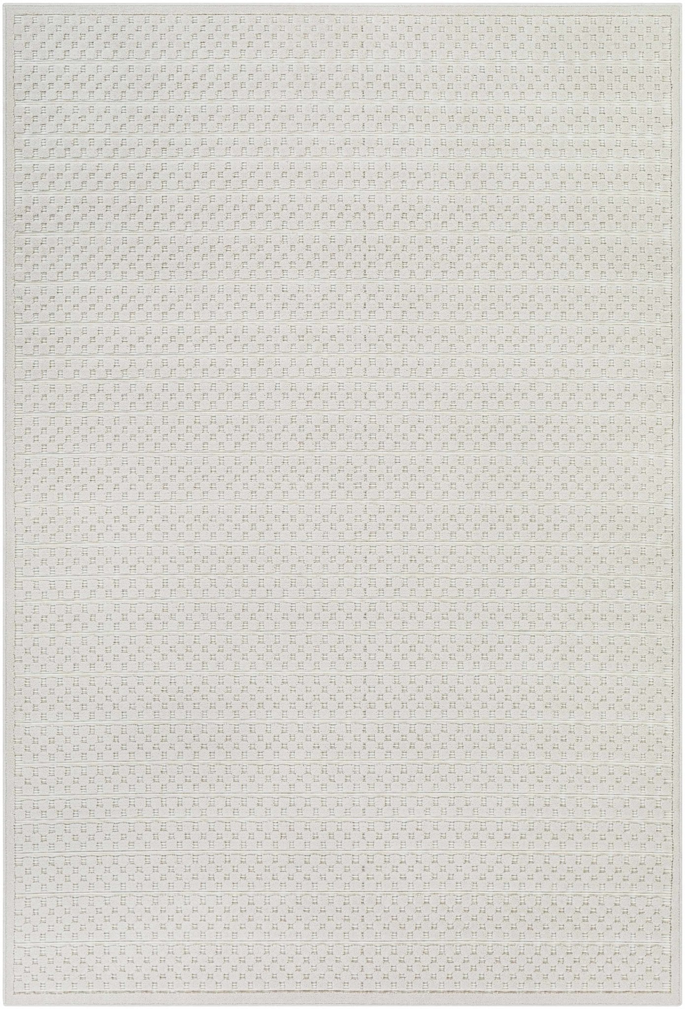 This contemporary geometric rug features striking ivory and charcoal patterns that complement any modern space. Machine-woven from durable 100% polypropylene, it's lightweight, low-pile, and outdoor-safe. Perfect for high-traffic areas, patios, or indoor living spaces seeking bold style with practical performance.