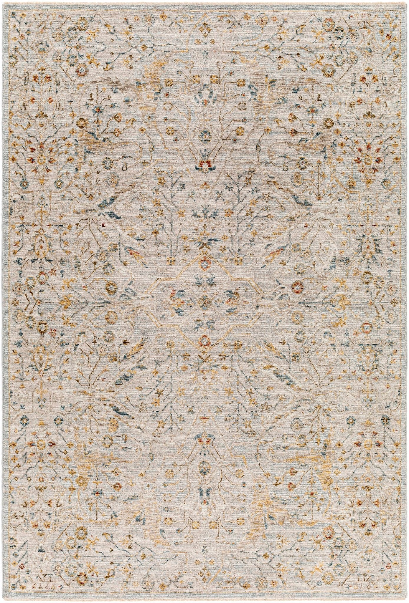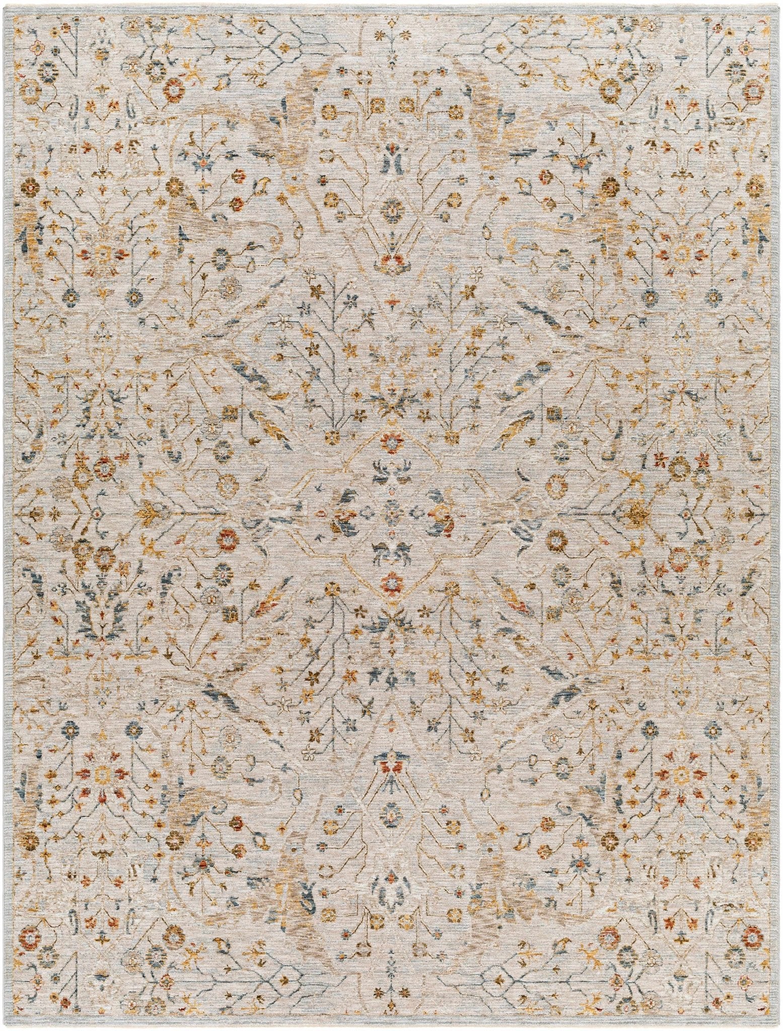 Cream Traditional Oushak Design Machine Woven Rug