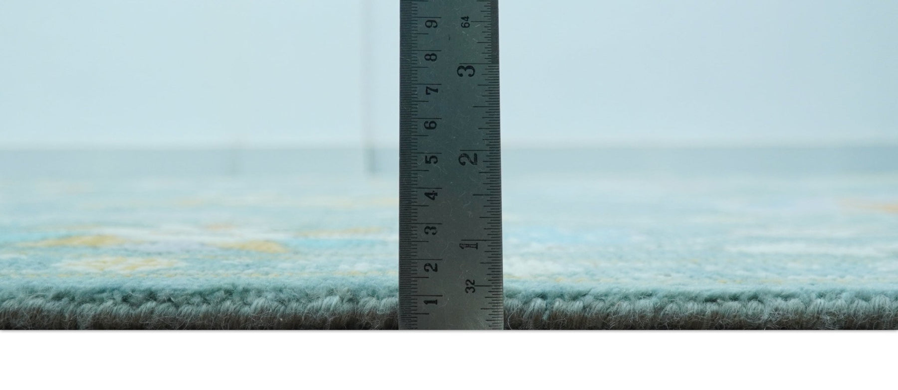 This custom hand-knotted wool rug features authentic Oushak design in sophisticated antique blue. Crafted using traditional methods, it combines timeless aesthetic appeal with exceptional quality and longevity for refined interiors.