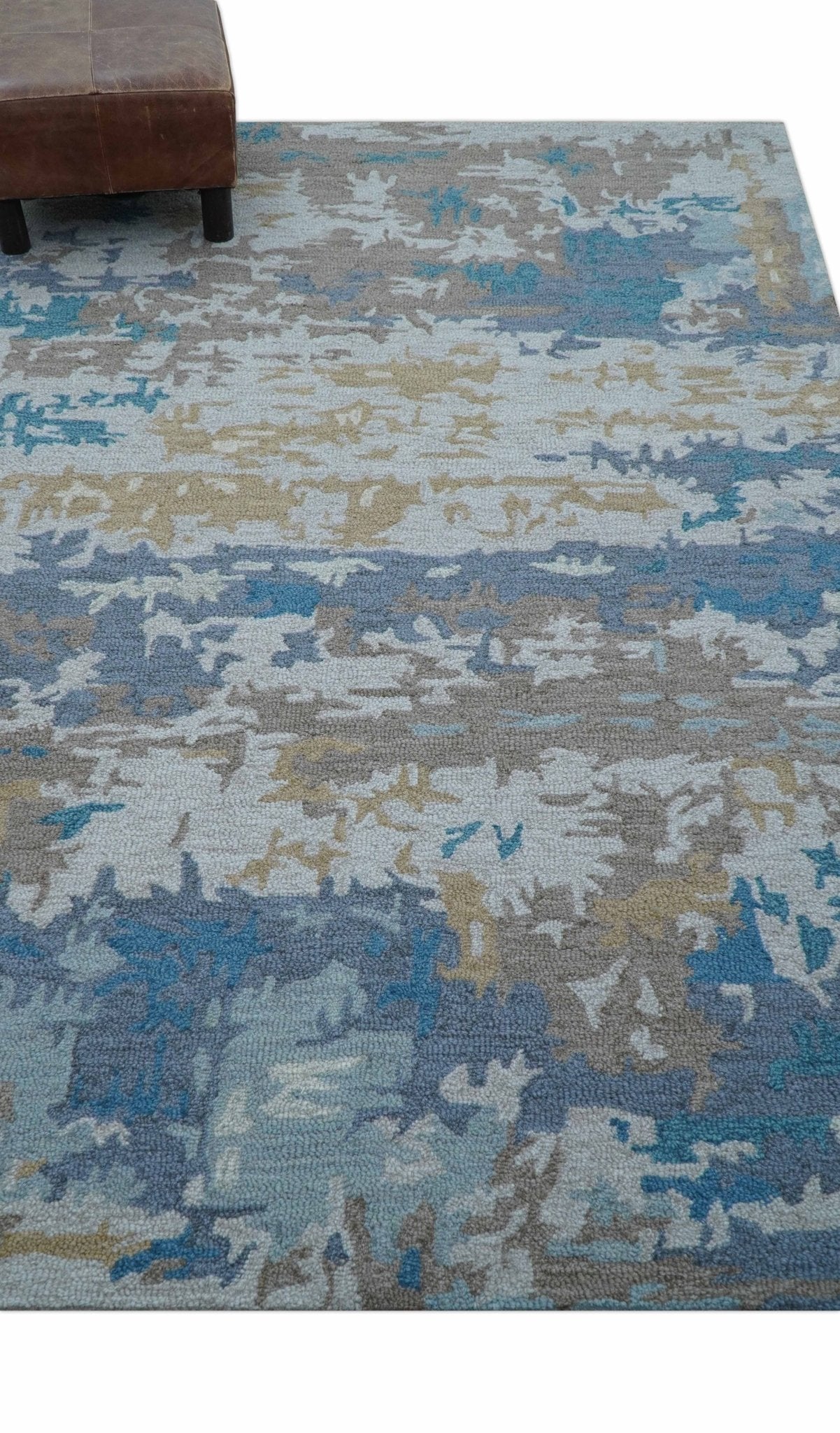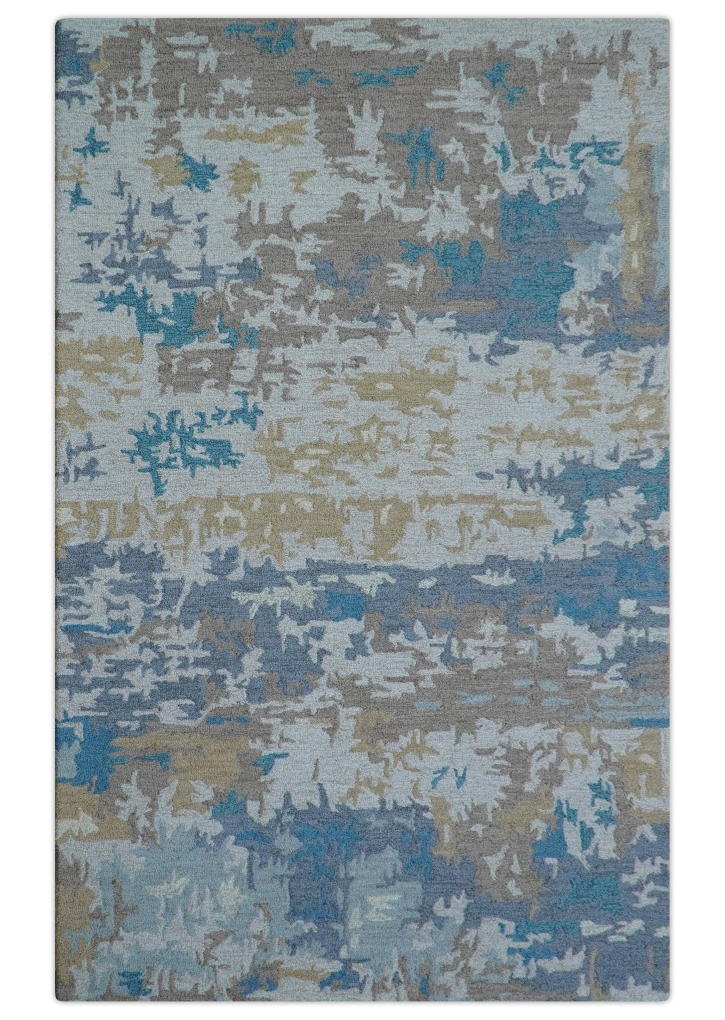 Custom Made Modern Abstract Blue And Beige Hand Tufted Wool Area Rug