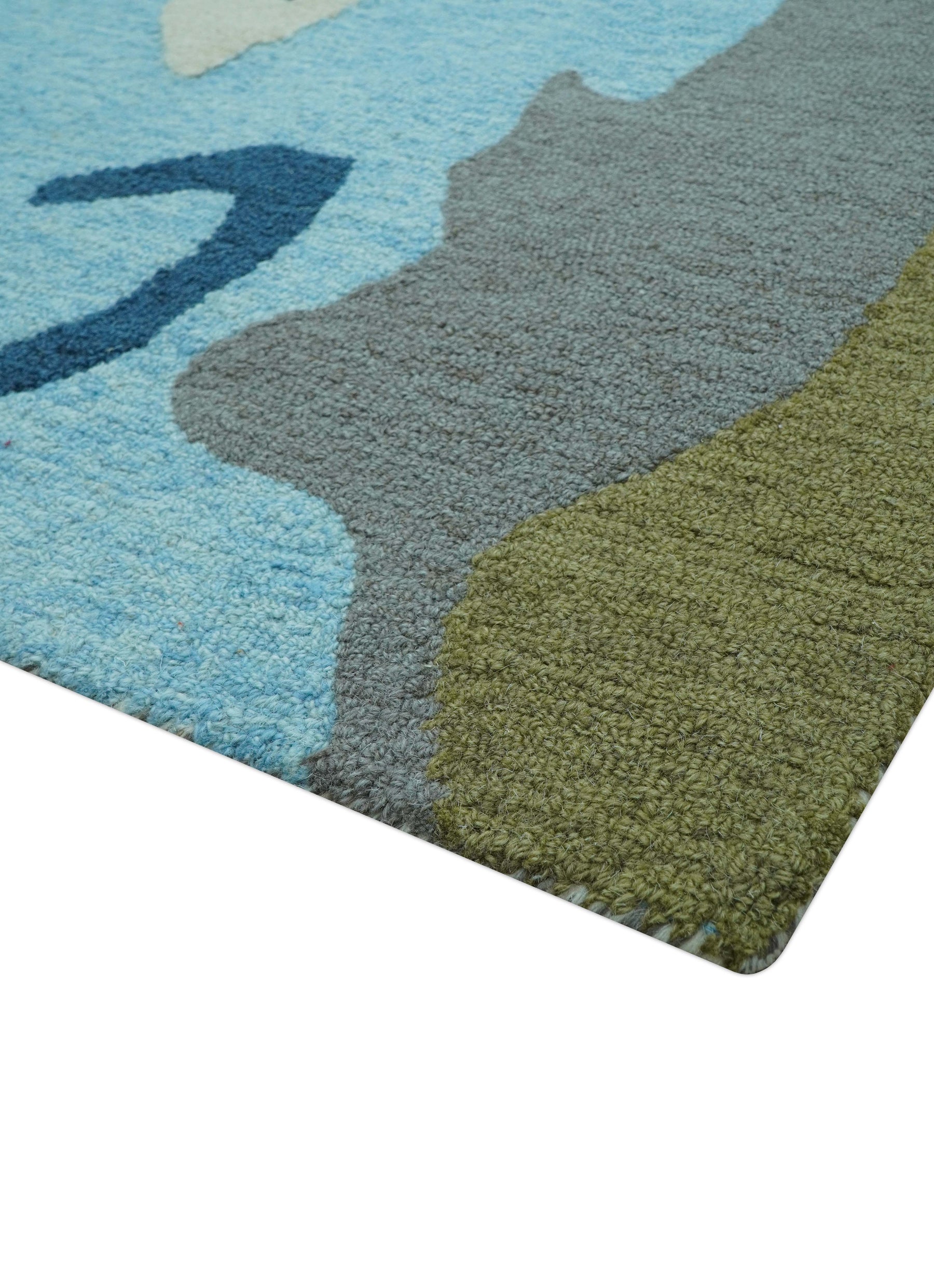 Bespoke hand-tufted wool rug with contemporary abstract design in dynamic blue and green shades. Order your custom creation to obtain a premium, individually crafted floor piece that brings artistic distinction and enduring quality to modern spaces.