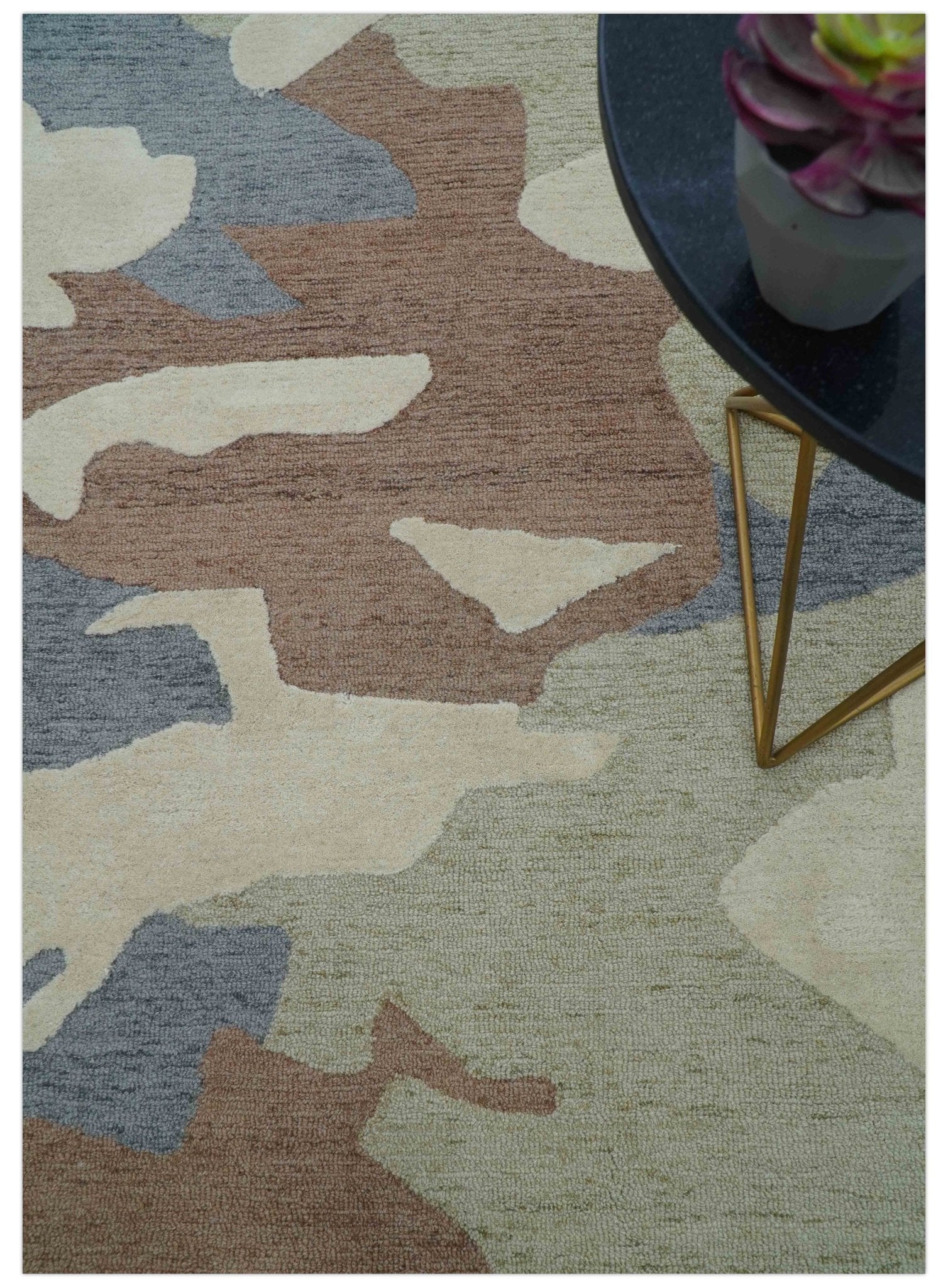 This custom-crafted area rug showcases a striking modern abstract design rendered in warm beige tones. Hand-tufted from premium wool, it combines artistic flair with exceptional durability and comfort underfoot. The intricate pattern adds visual depth to any contemporary space while the natural wool fiber ensures lasting softness and resilience. Perfect for living rooms, bedrooms, or creative spaces seeking a sophisticated focal point that balances bold design with neutral elegance.