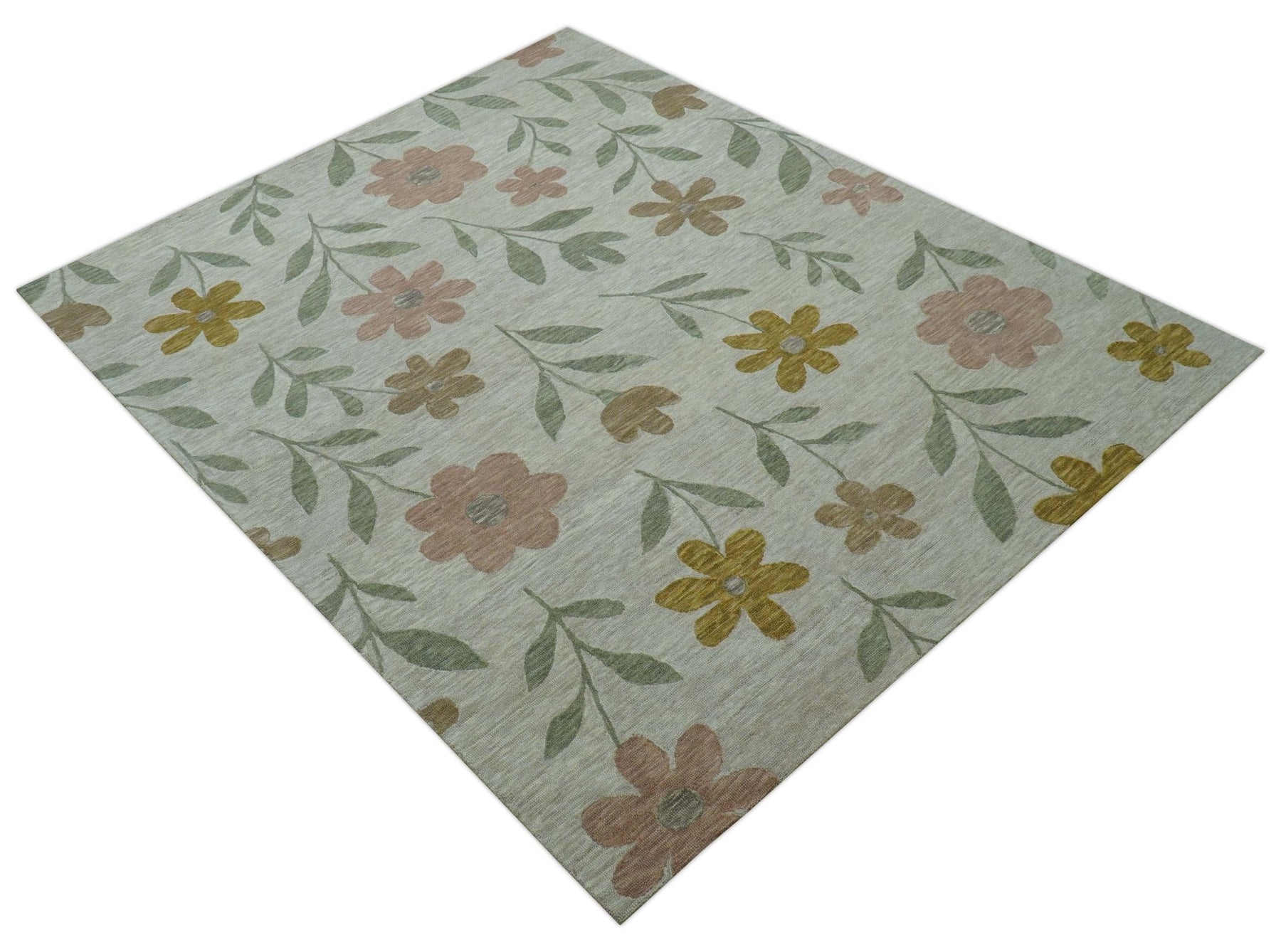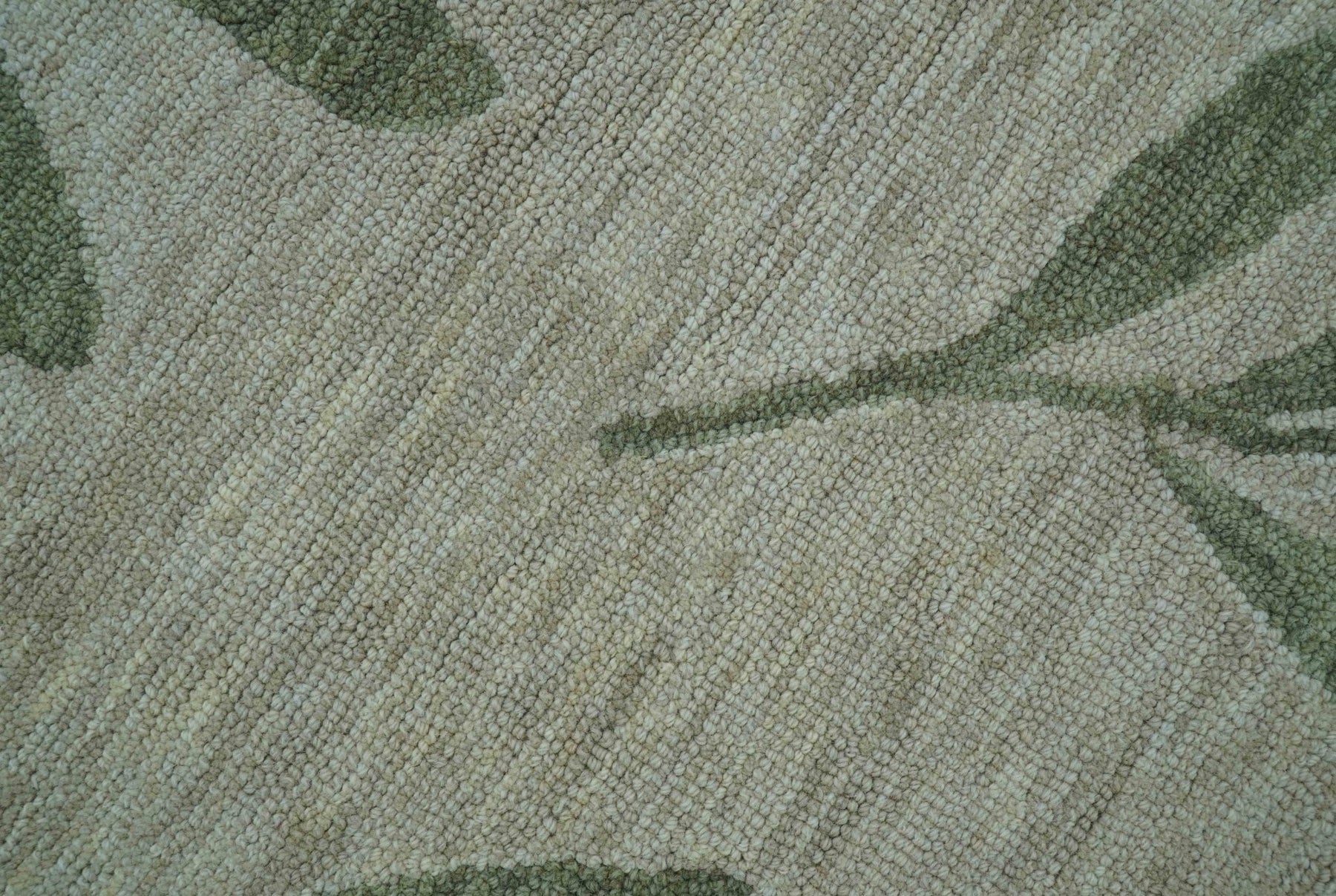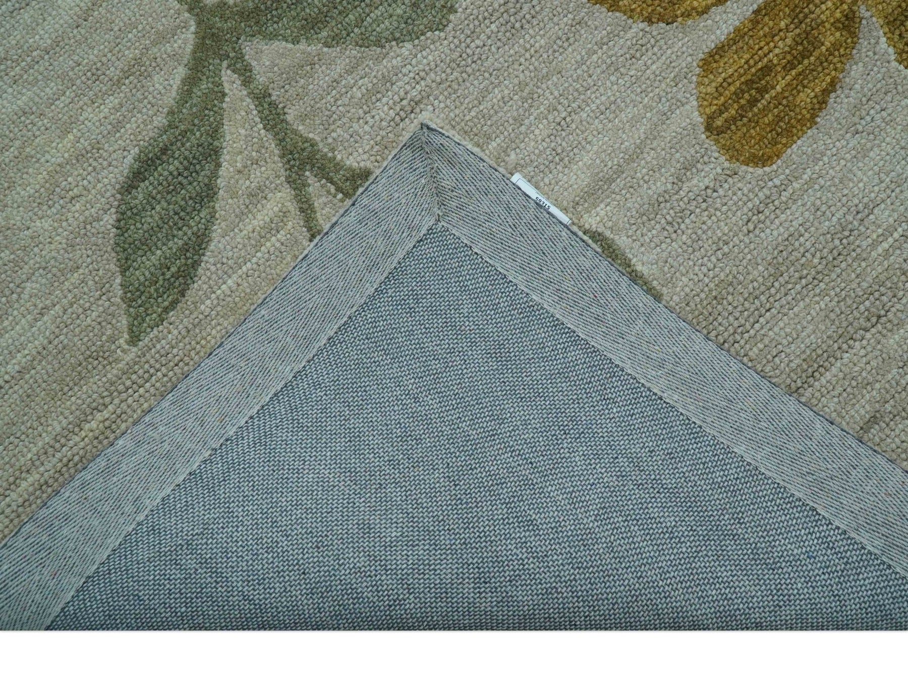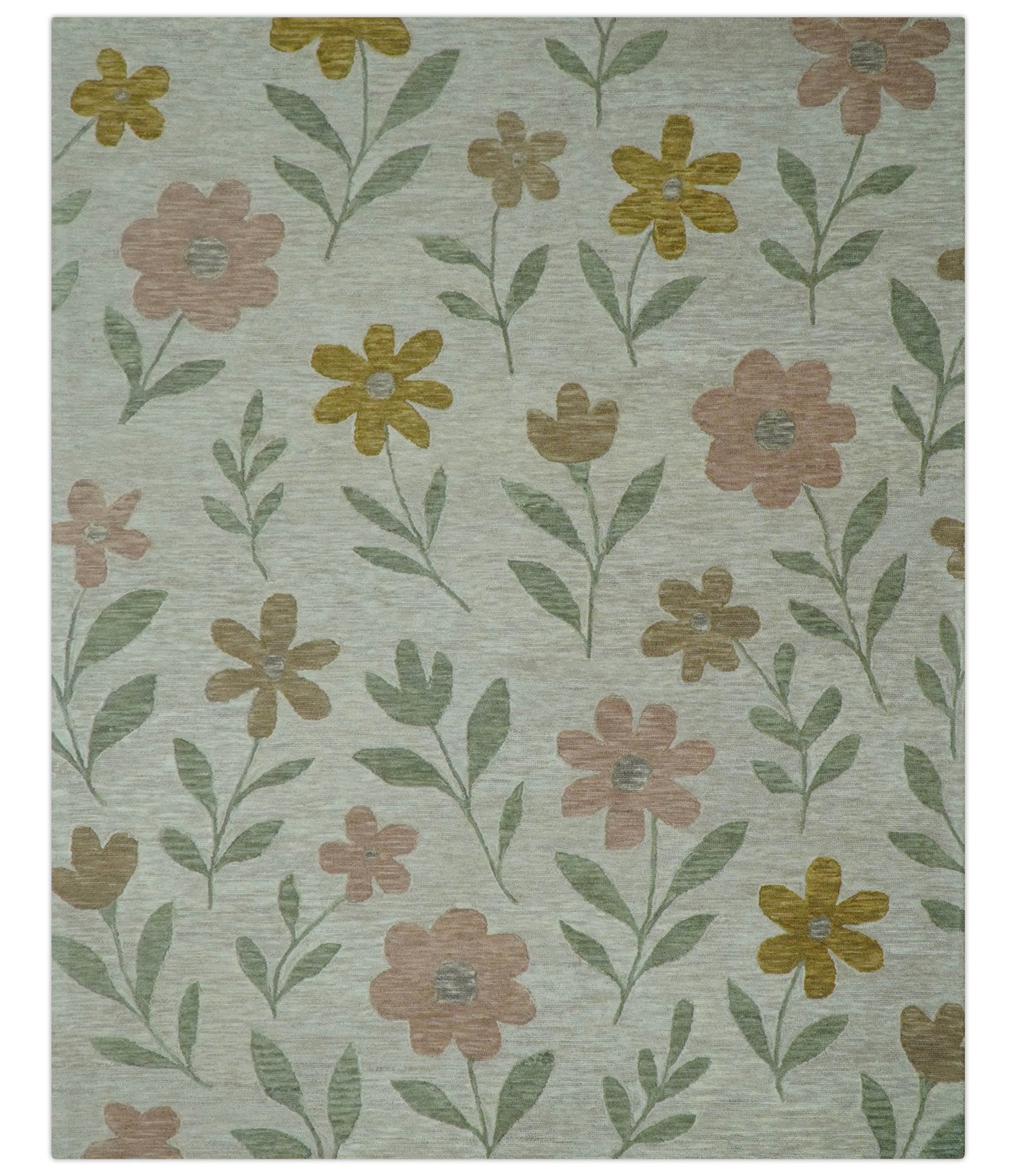 Custom Made Modern Floral Design Beige Hand Tufted Wool Area Rug