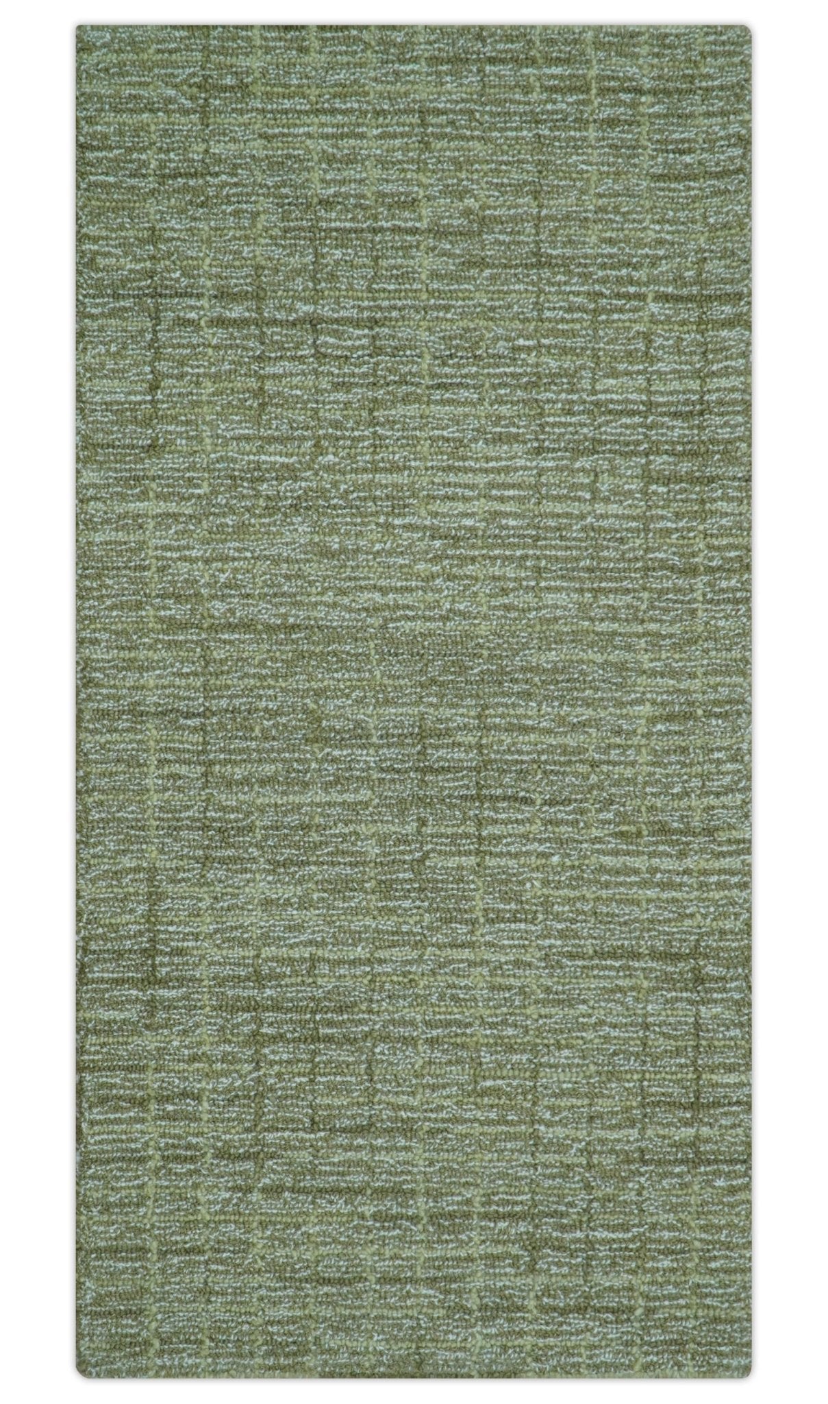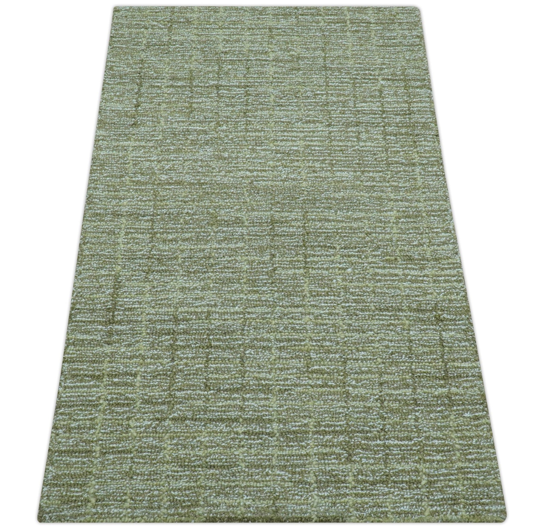 Custom Made Olive and Beige Modern Style Hand Tufted Wool Rug