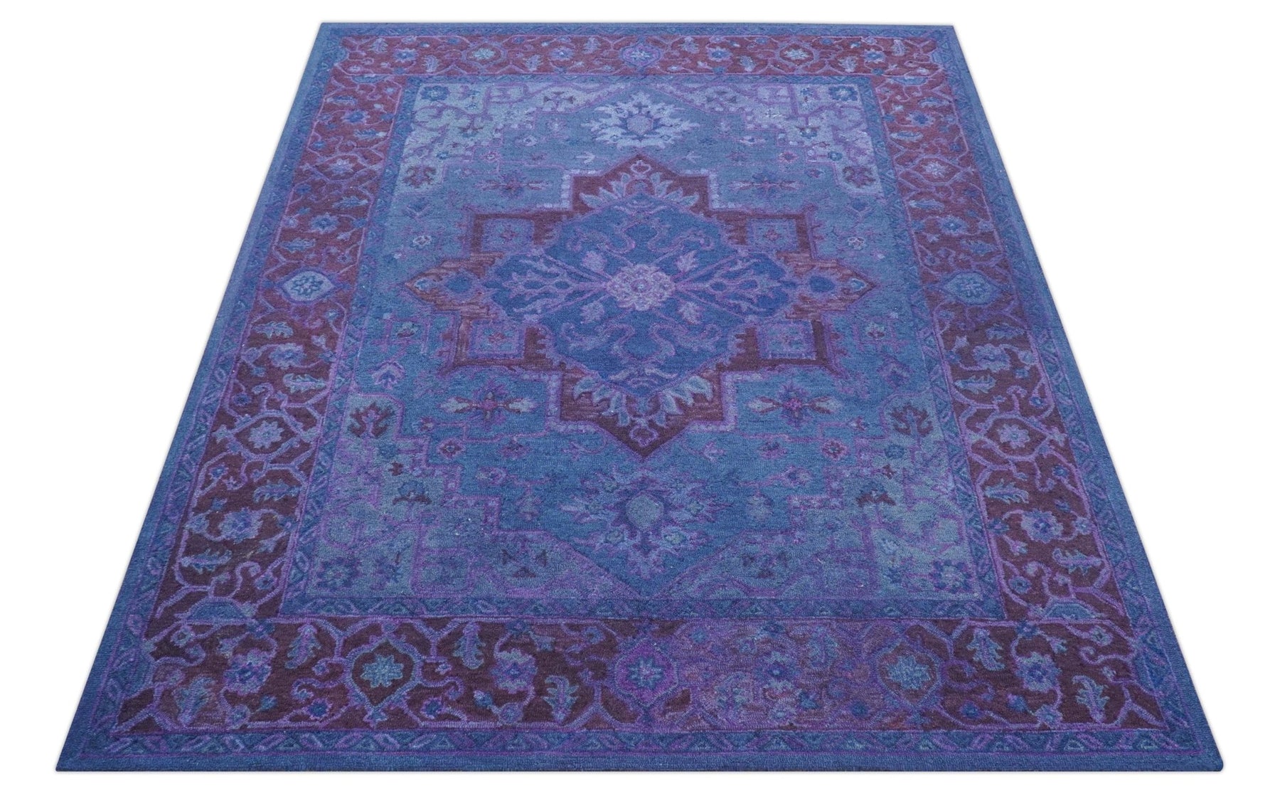 Sky Traditional Design Purple Hand Tufted Overdyed Wool Rug