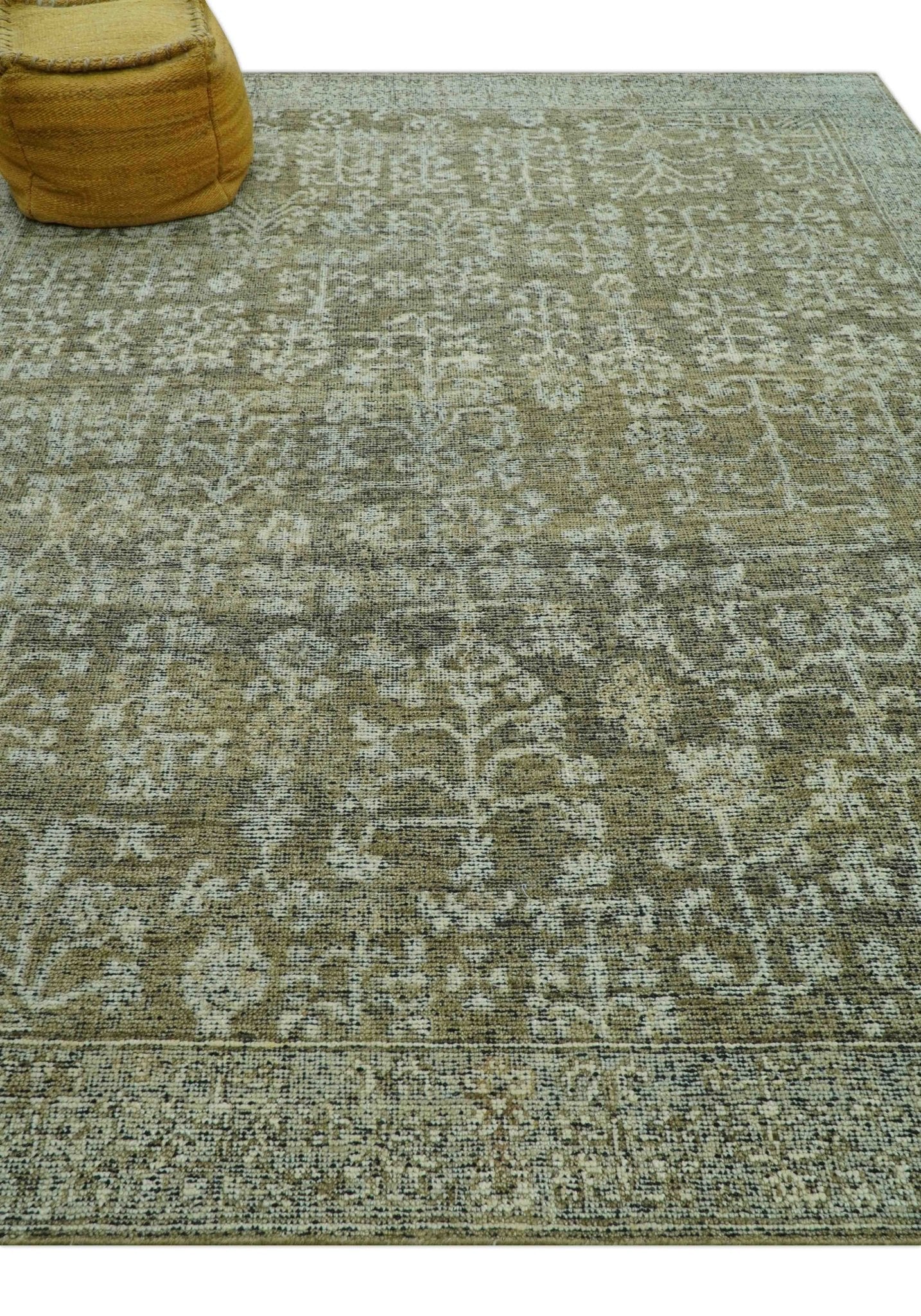 Custom Made Traditional Design Olive Hand Knotted Wool Area Rug