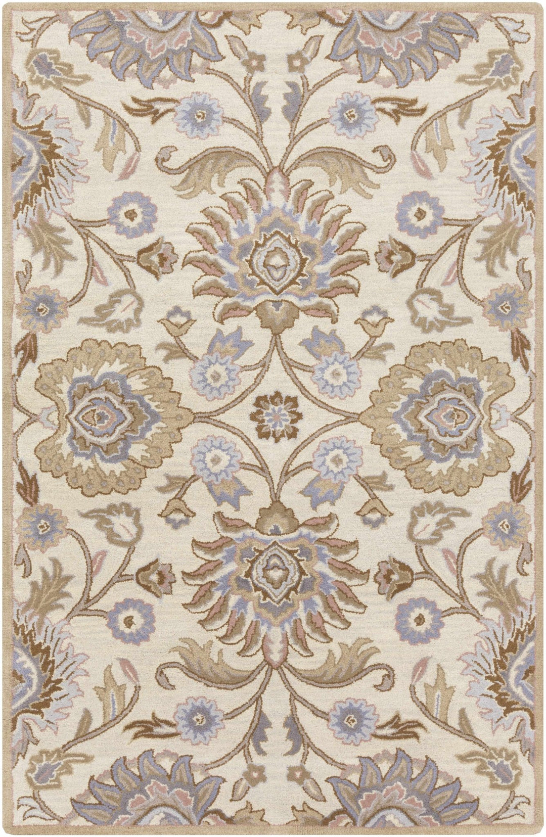 Floral Beige, Tan, Violet and Brown Traditional Hand Tufted wool area Rug