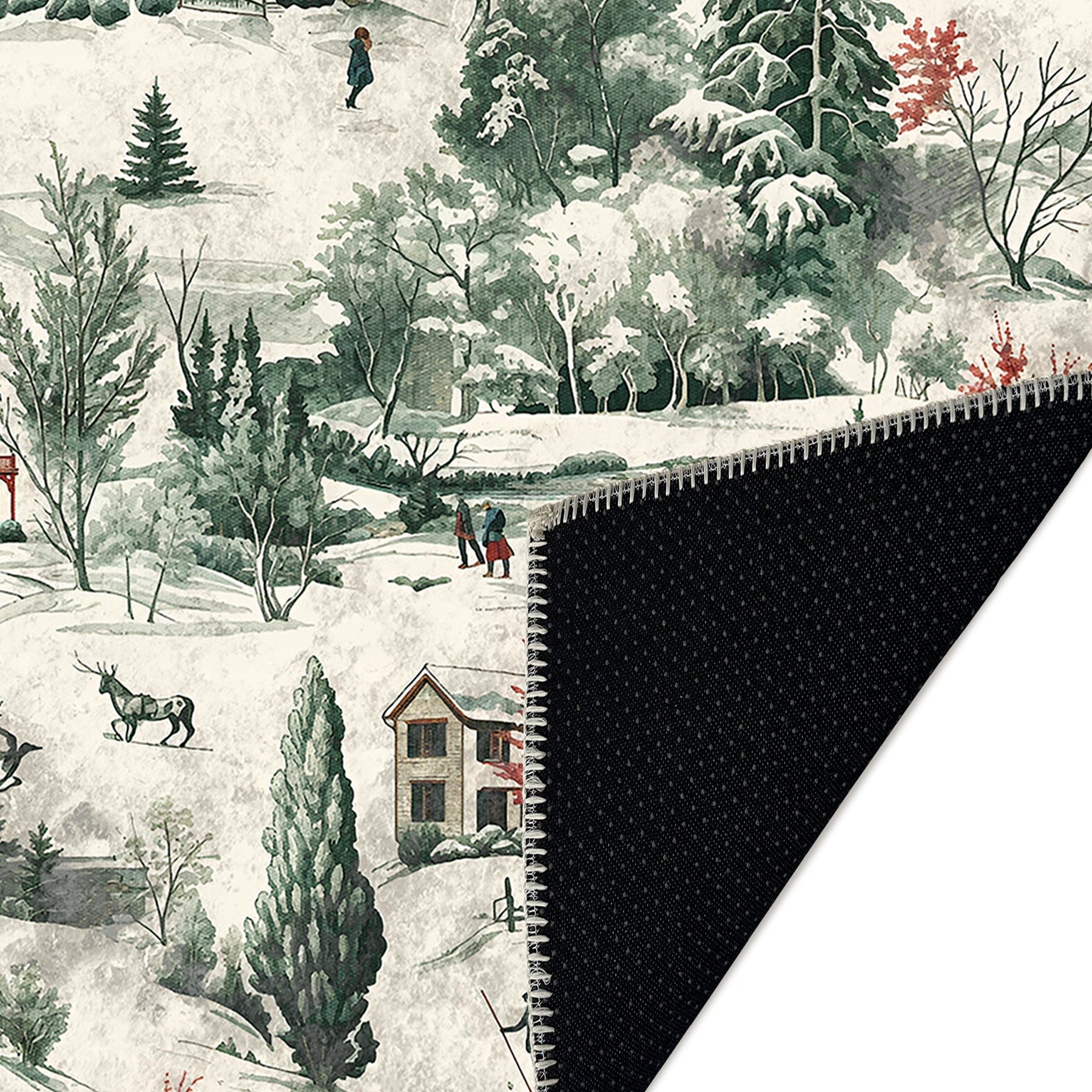 Glowmas Christmas Green Machine Washable Cotton Area Rug