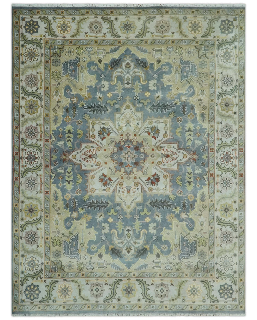 Antique Style Gray, Beige and Silver 9x12 Hand Knotted Traditional Medallion wool rug