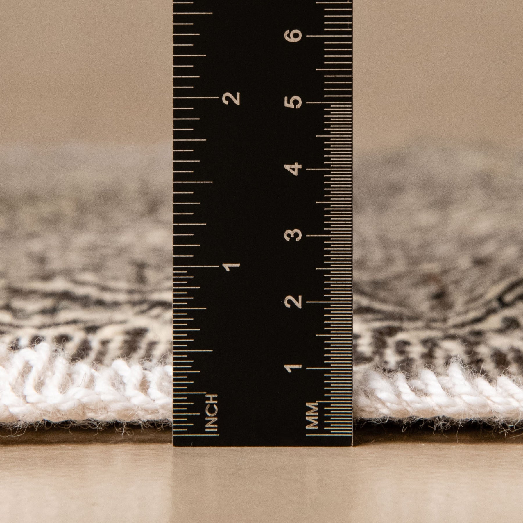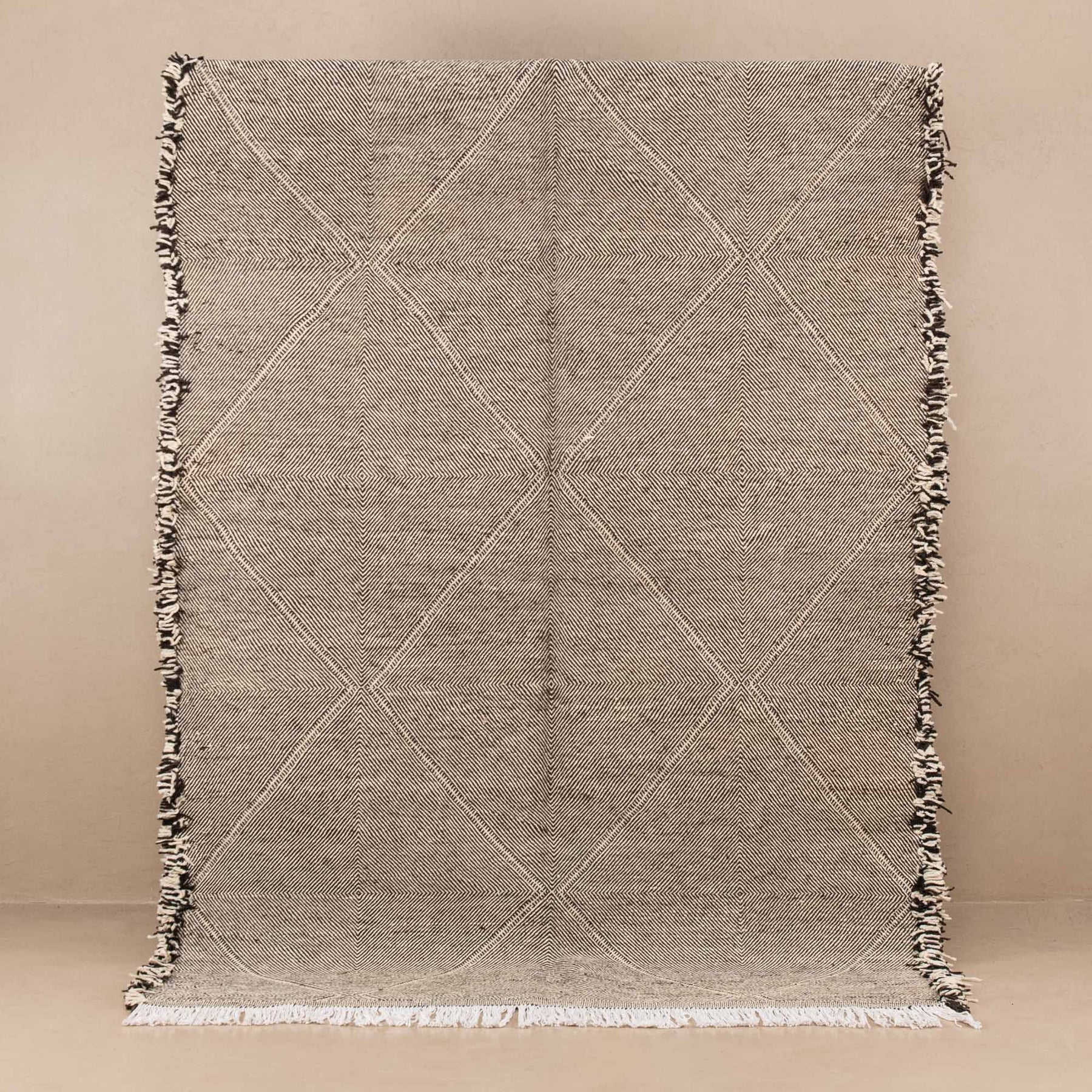 This hand-knotted wool rug showcases authentic Moroccan craftsmanship with a striking black and white contemporary design. The 6x8.6 dimensions make it ideal for living rooms or bedrooms. Each piece is meticulously crafted, offering durability and timeless elegance that complements modern interiors while honoring traditional weaving techniques.