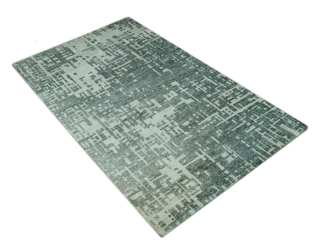 Hand Knotted Gray and Silver 5x8 Modern Abstract Contemporary Recycled Silk Rug
