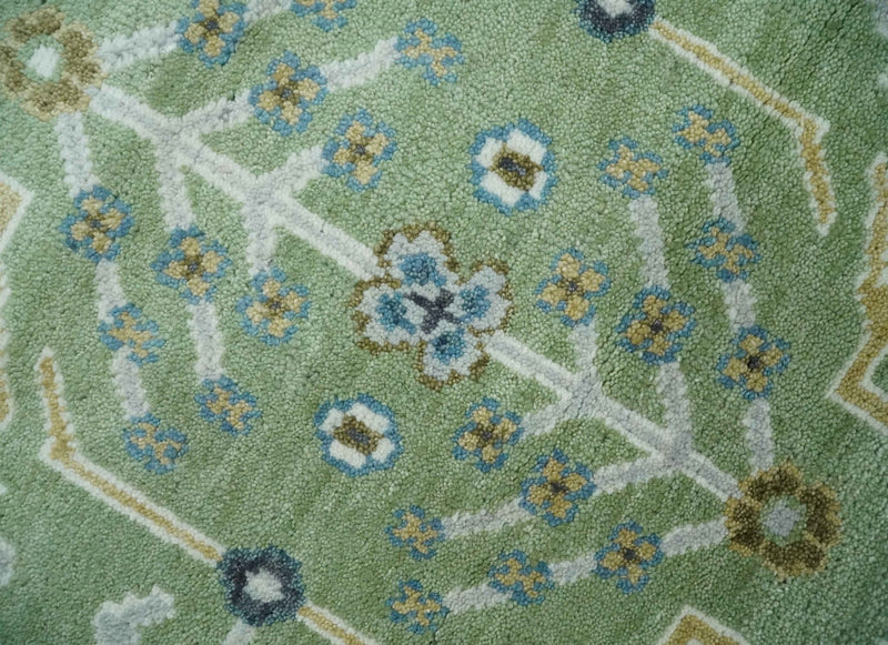 Hand Knotted Green, Ivory and Silver Traditional Turkish Vintage Style Wool Rug