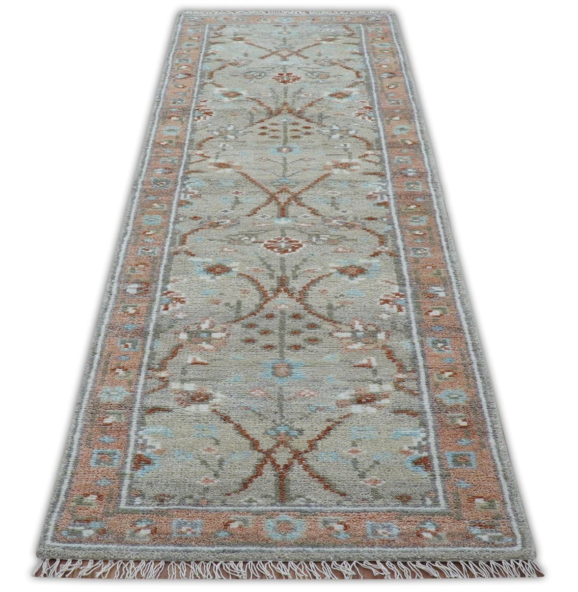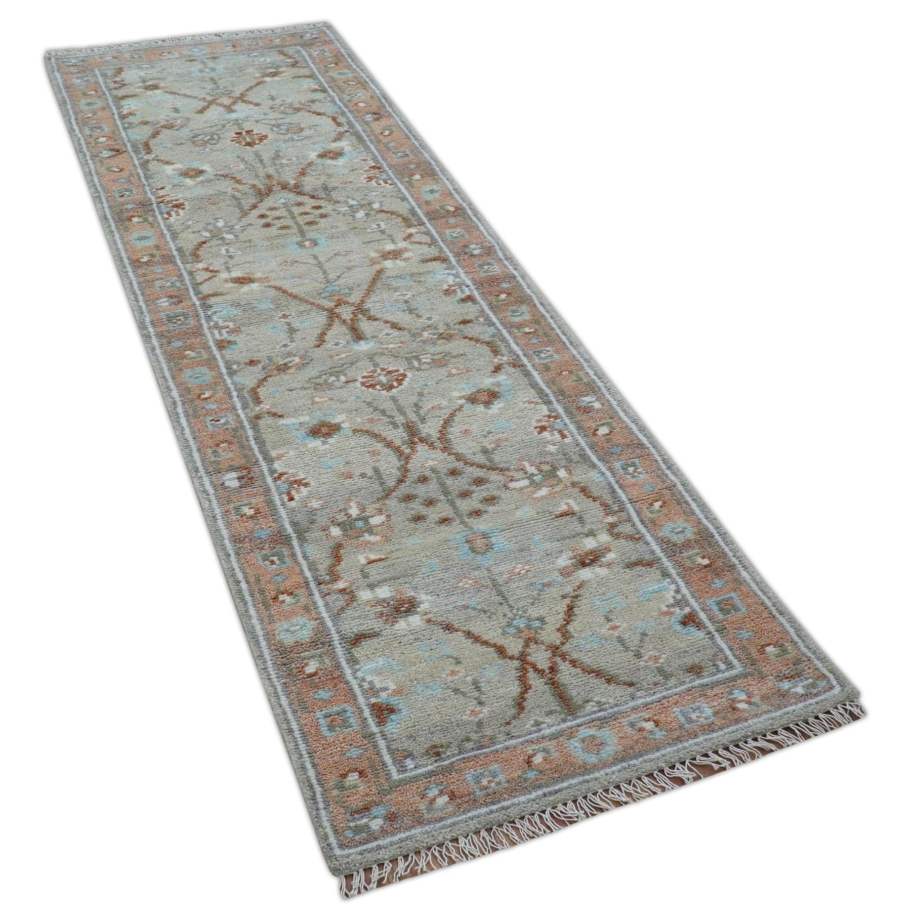 Hand knotted Silver And Rust Traditional Turkish Design 2.6x10 Wool Area Rug
