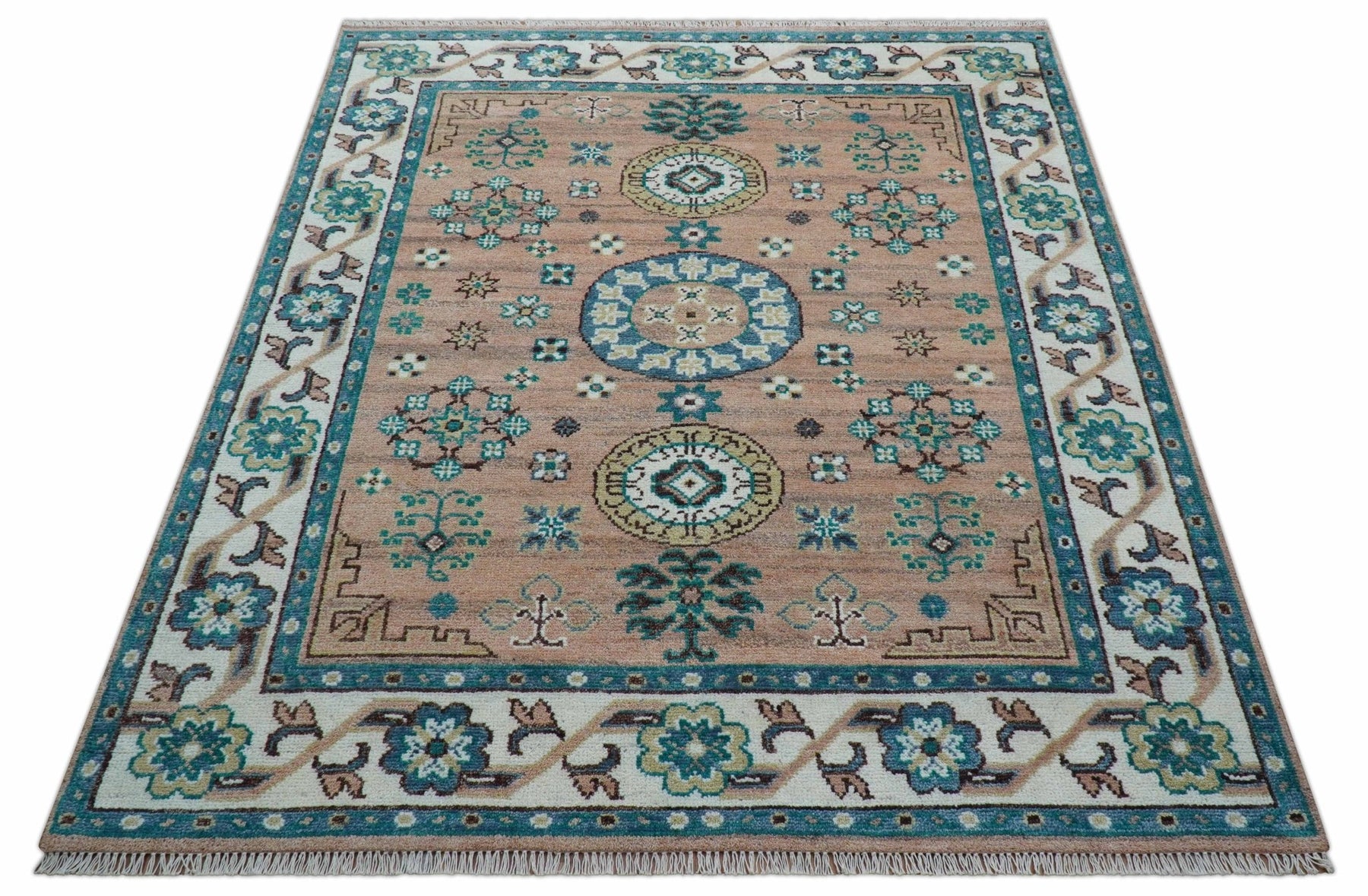 Hand knotted Peach Traditional Khotan Design 8x10 Wool Area Rug