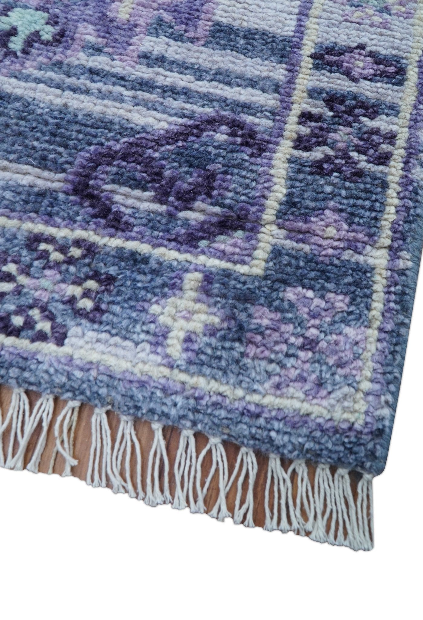 Hand knotted 2.6x8 Purple transitional geometrical Design Wool Area Rug