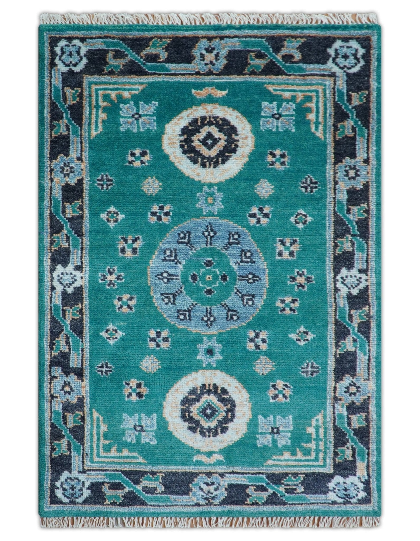 Hand knotted Teal Traditional Khotan Design 4x6 Wool Area Rug