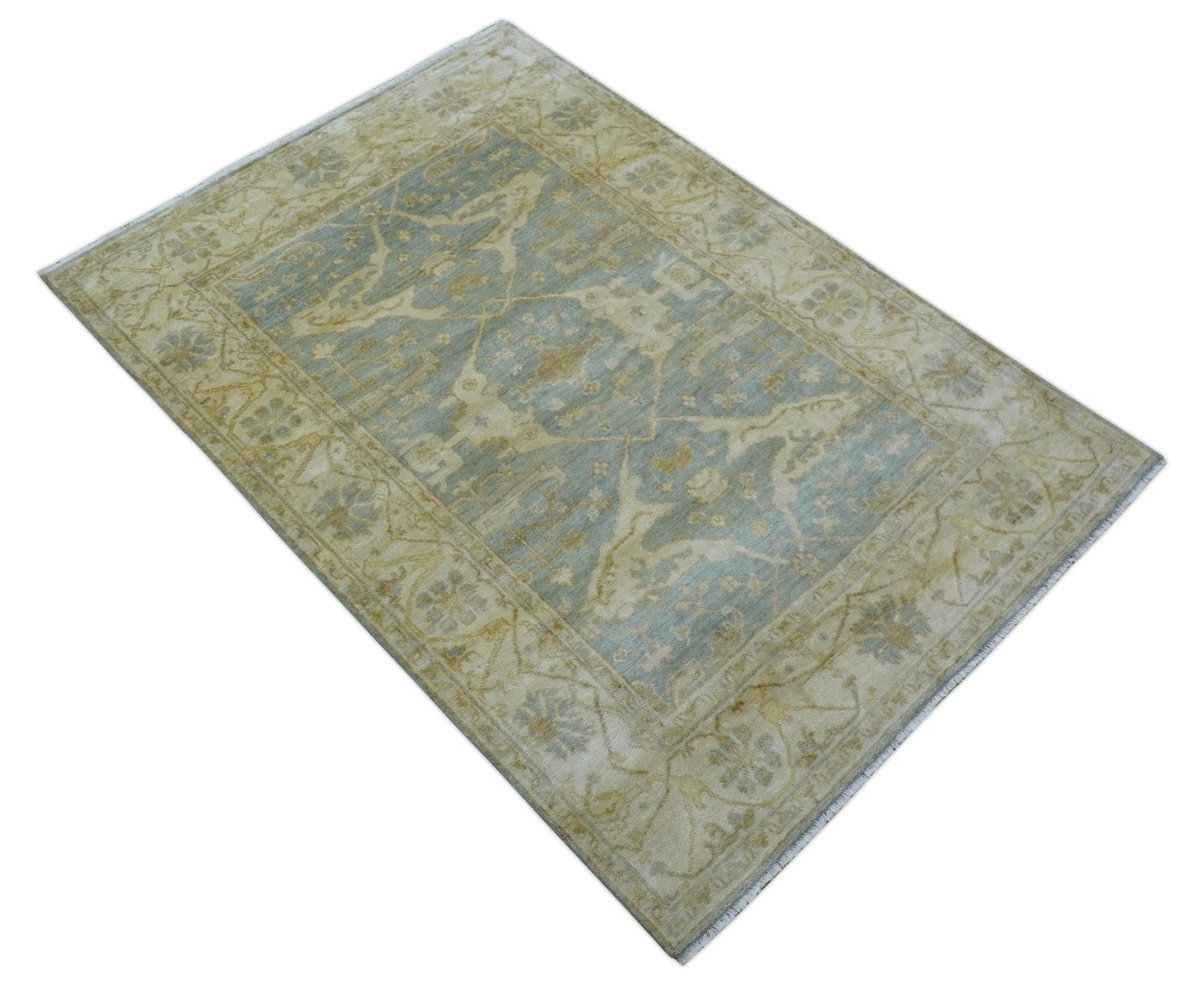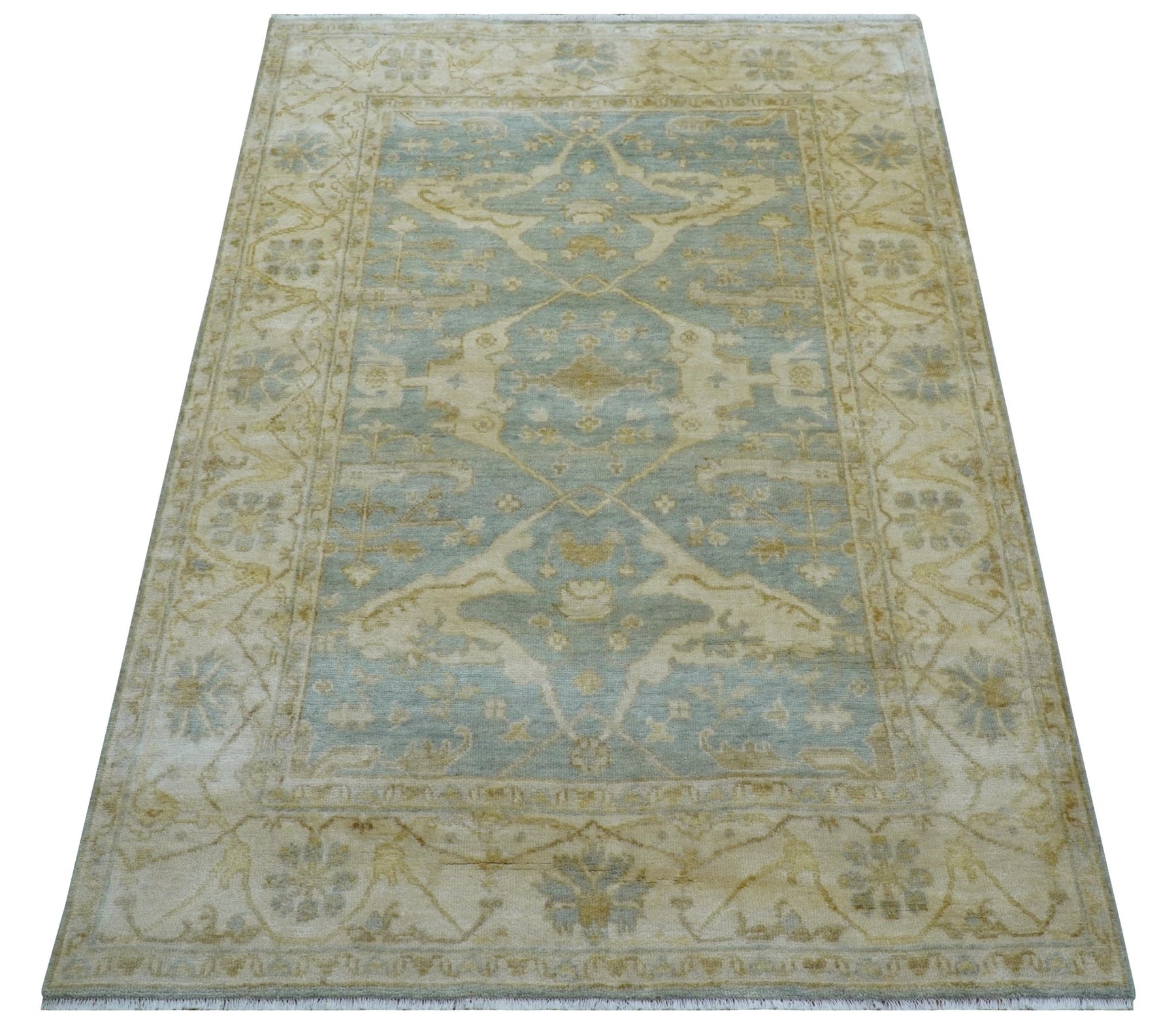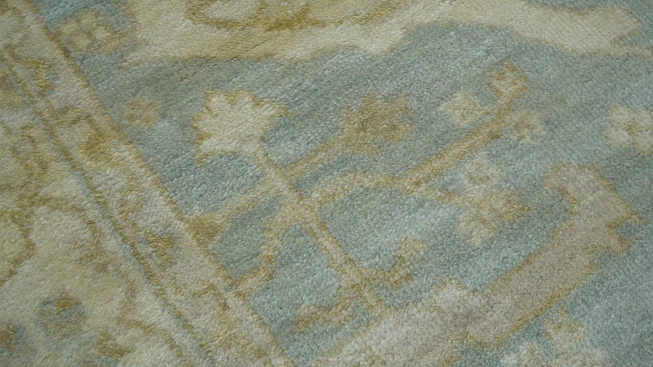 Hand Knotted Traditional Oushak Design Blue And Beige 6x9 Wool Rug