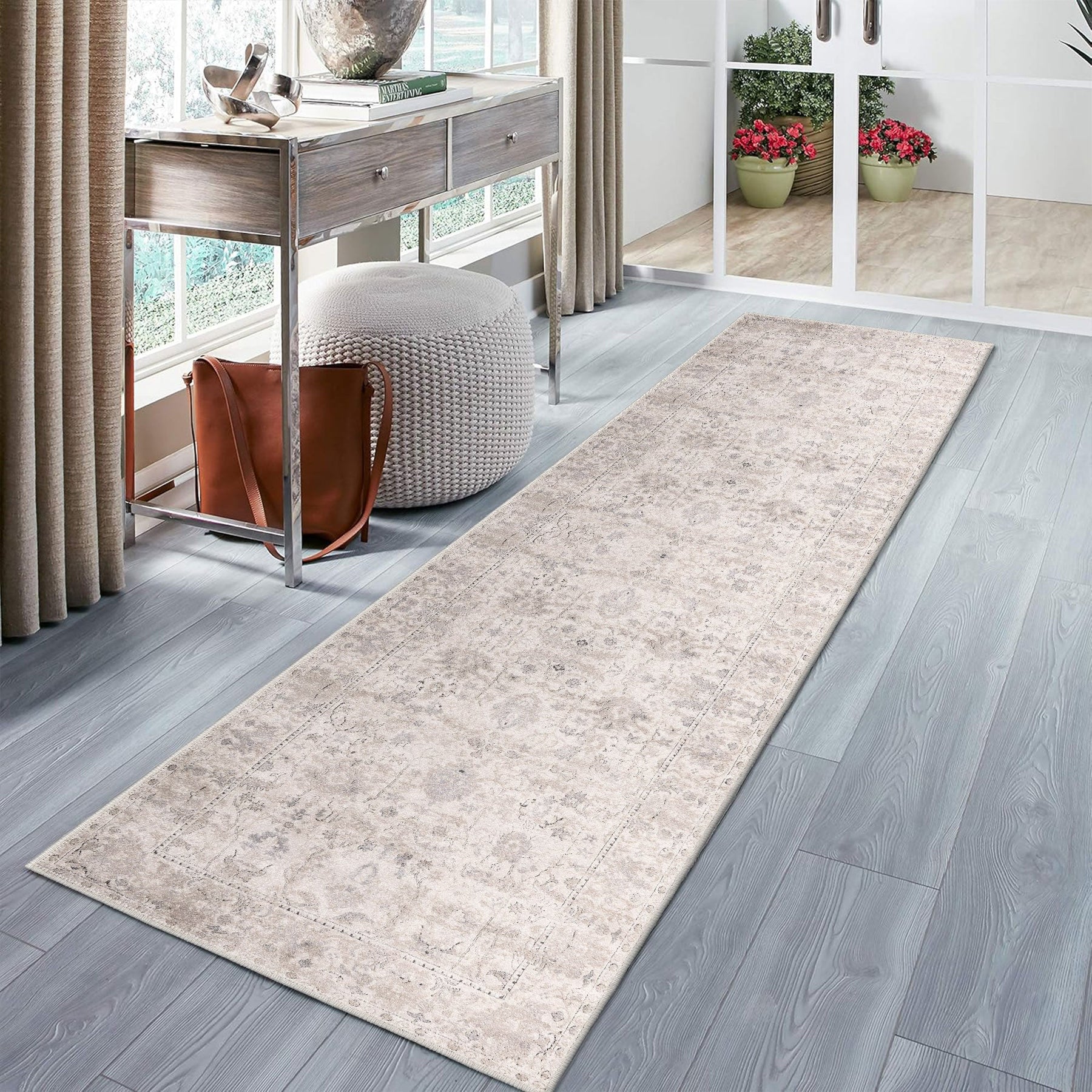 Machine Washable Ivory Traditional style Cotton Rug