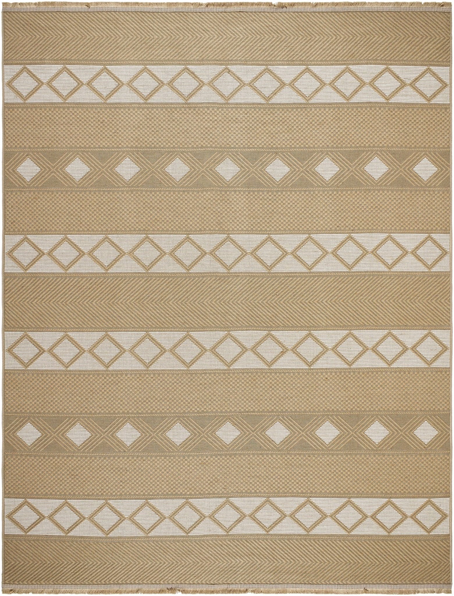 Machine Woven Tan Bohemian Style Jute Rug