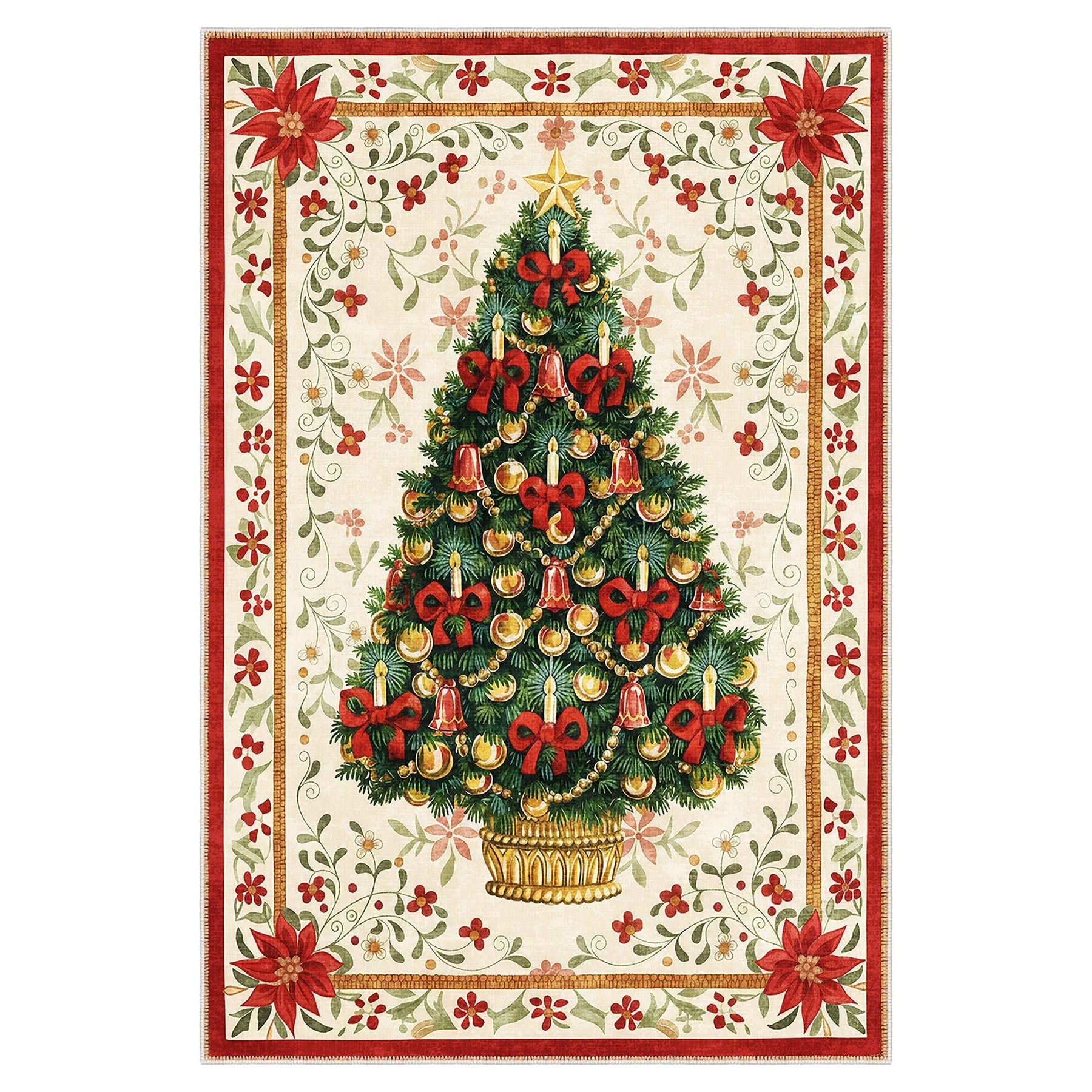 Marloen Christmas Beige Cotton Machine Washable Area Rug