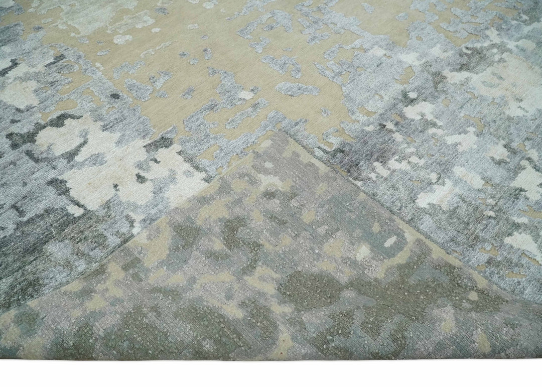 Modern Abstract 8x10 Beige, Ivory and Gray Hand Knotted Bamboo Silk and Wool Area Rug