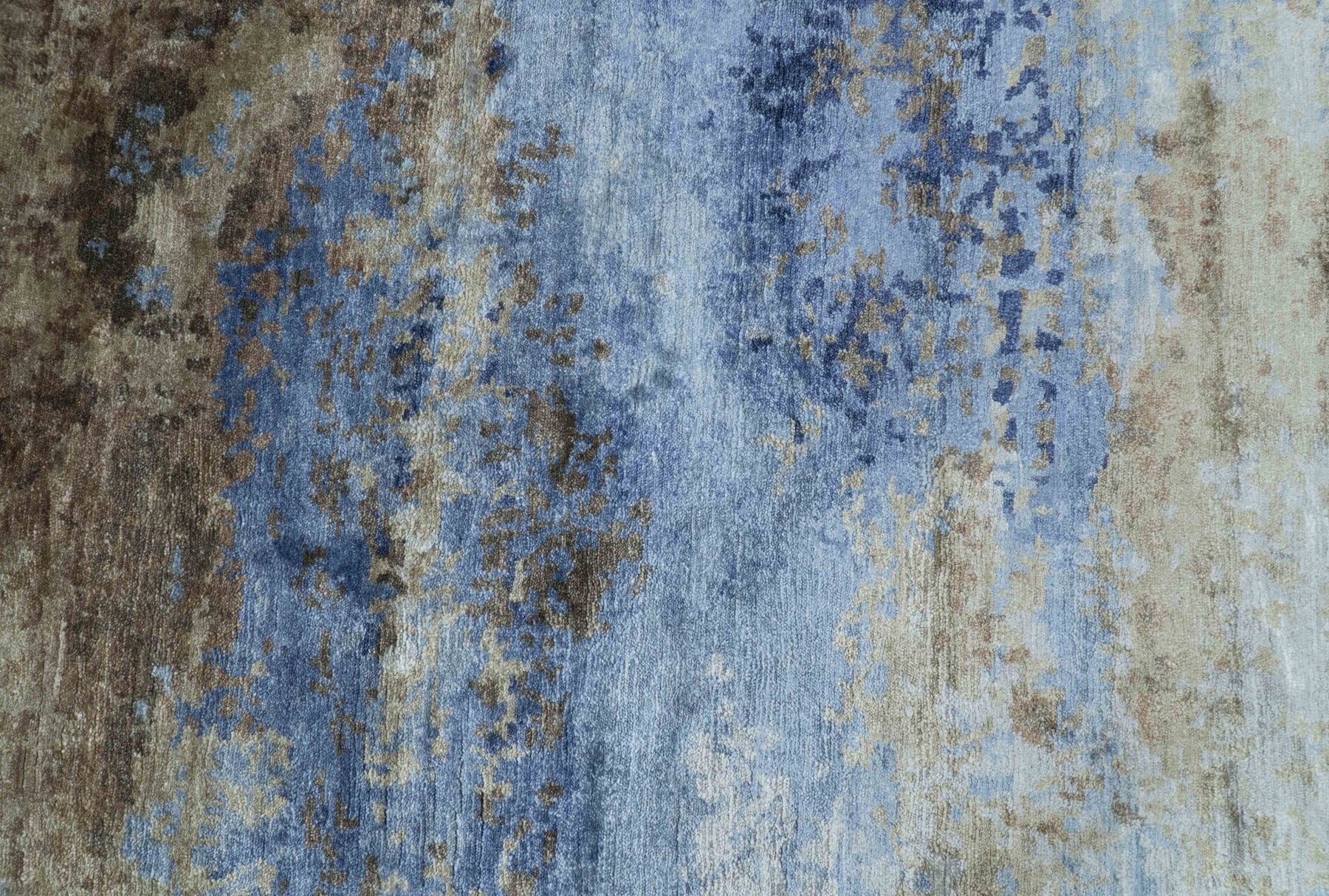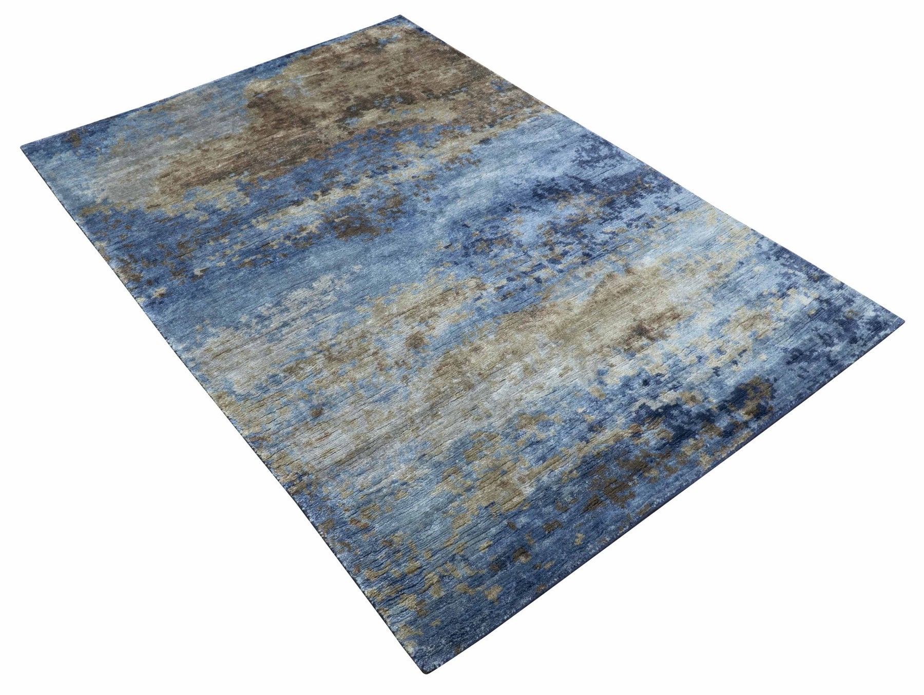 Modern Abstract Blue And Beige 4x6 Hand Knotted Bamboo Silk Rug