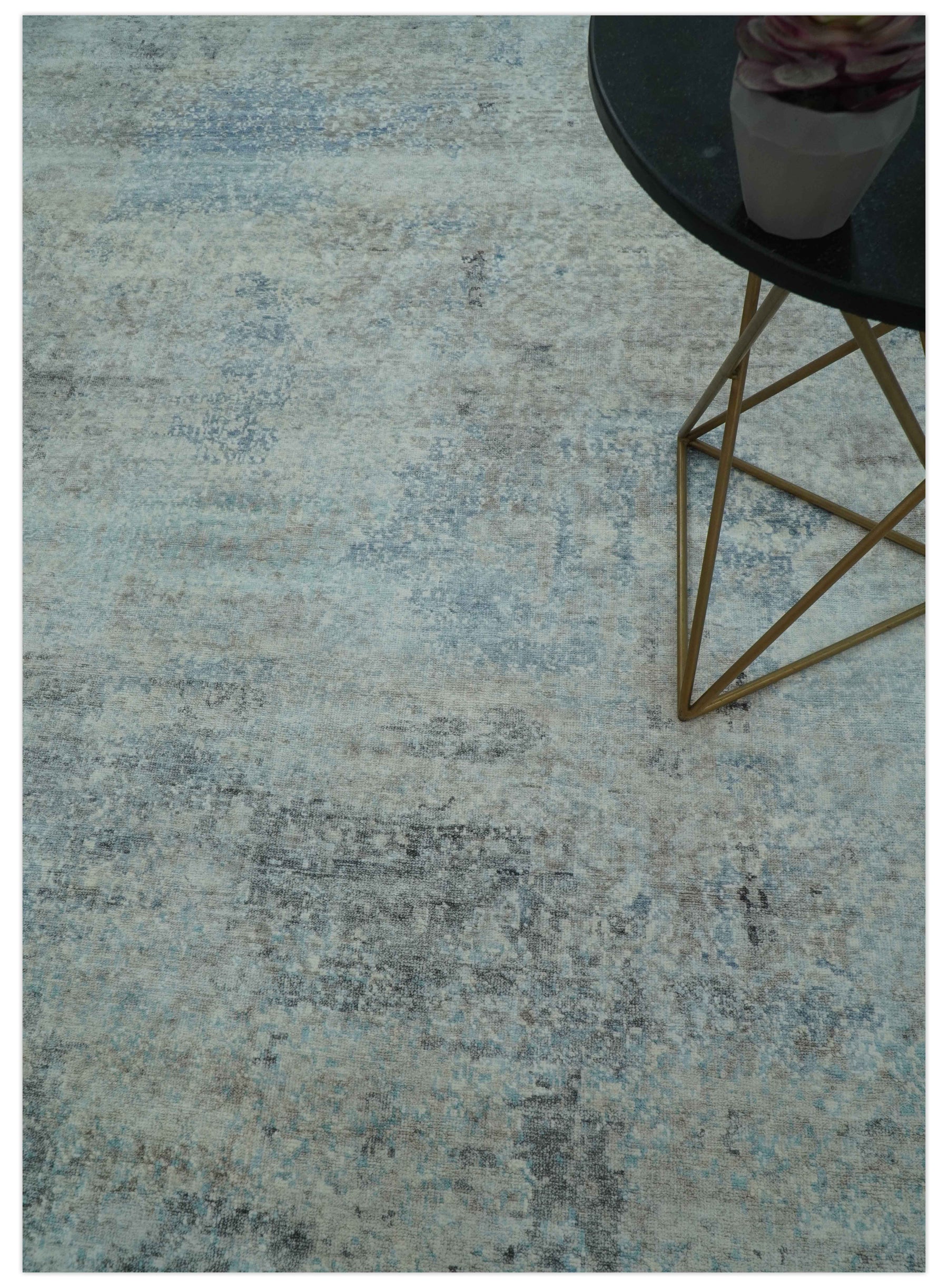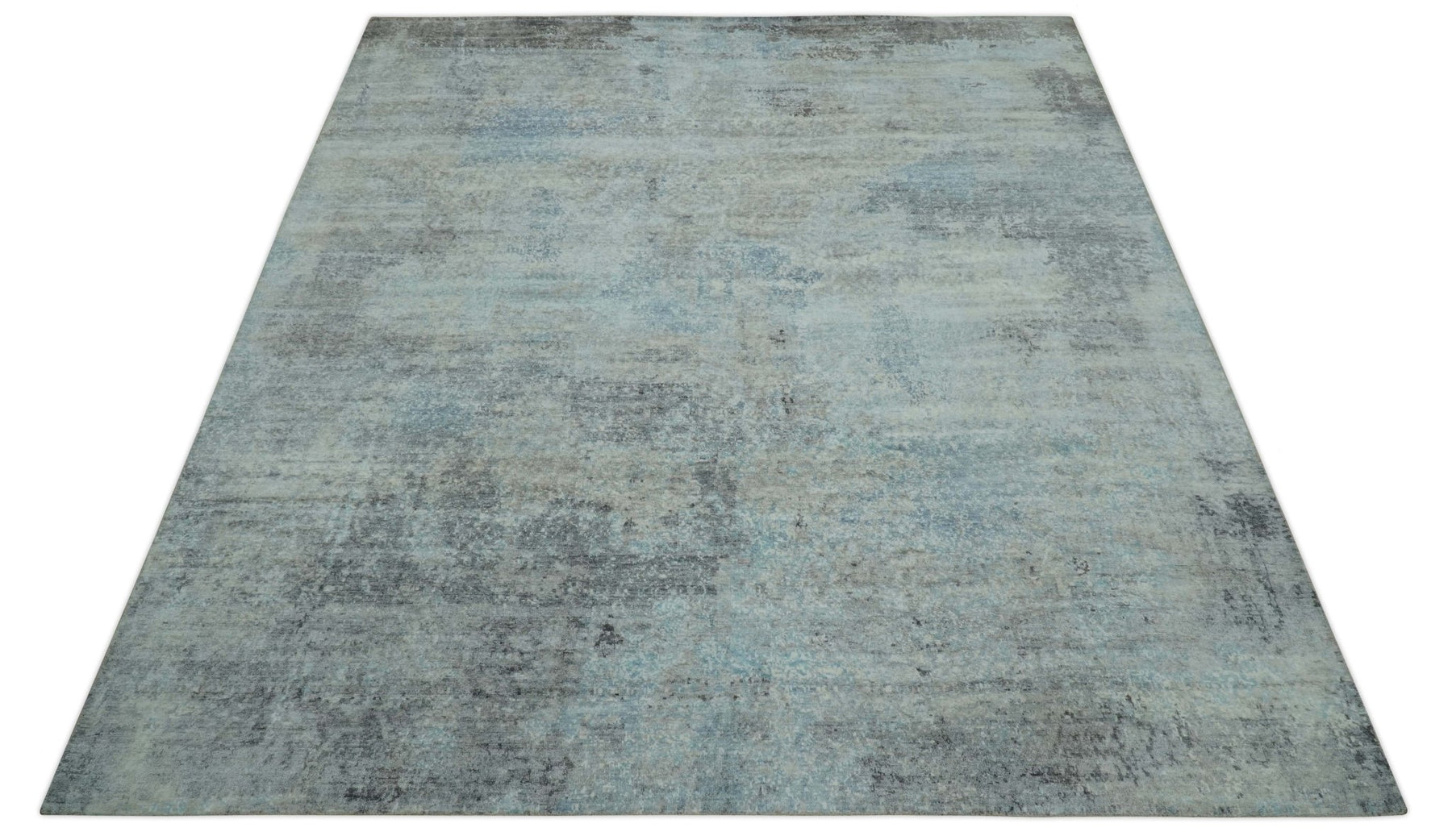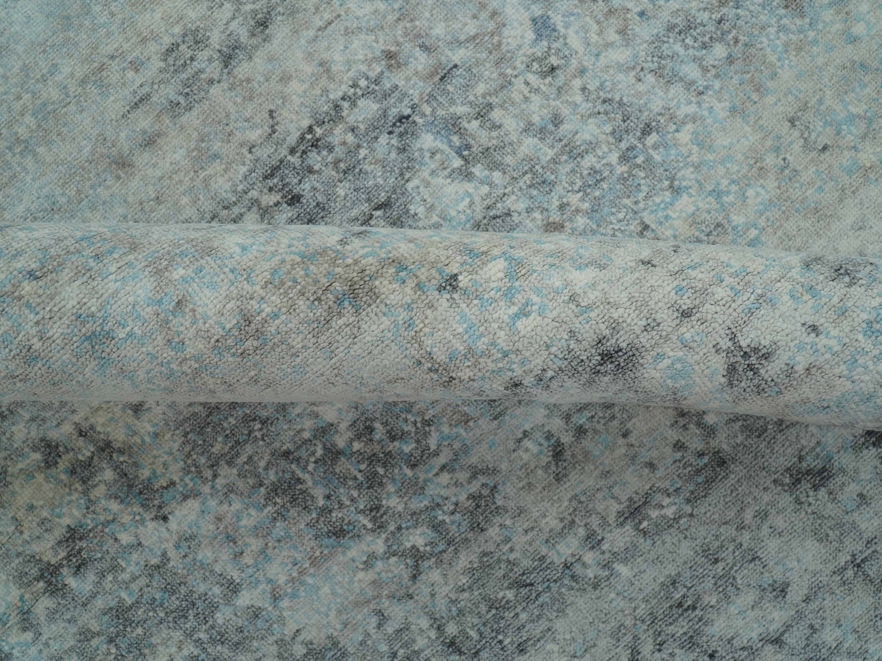 Abstract Blue And Gray 8x10 Hand Knotted Bamboo Silk Area Rug