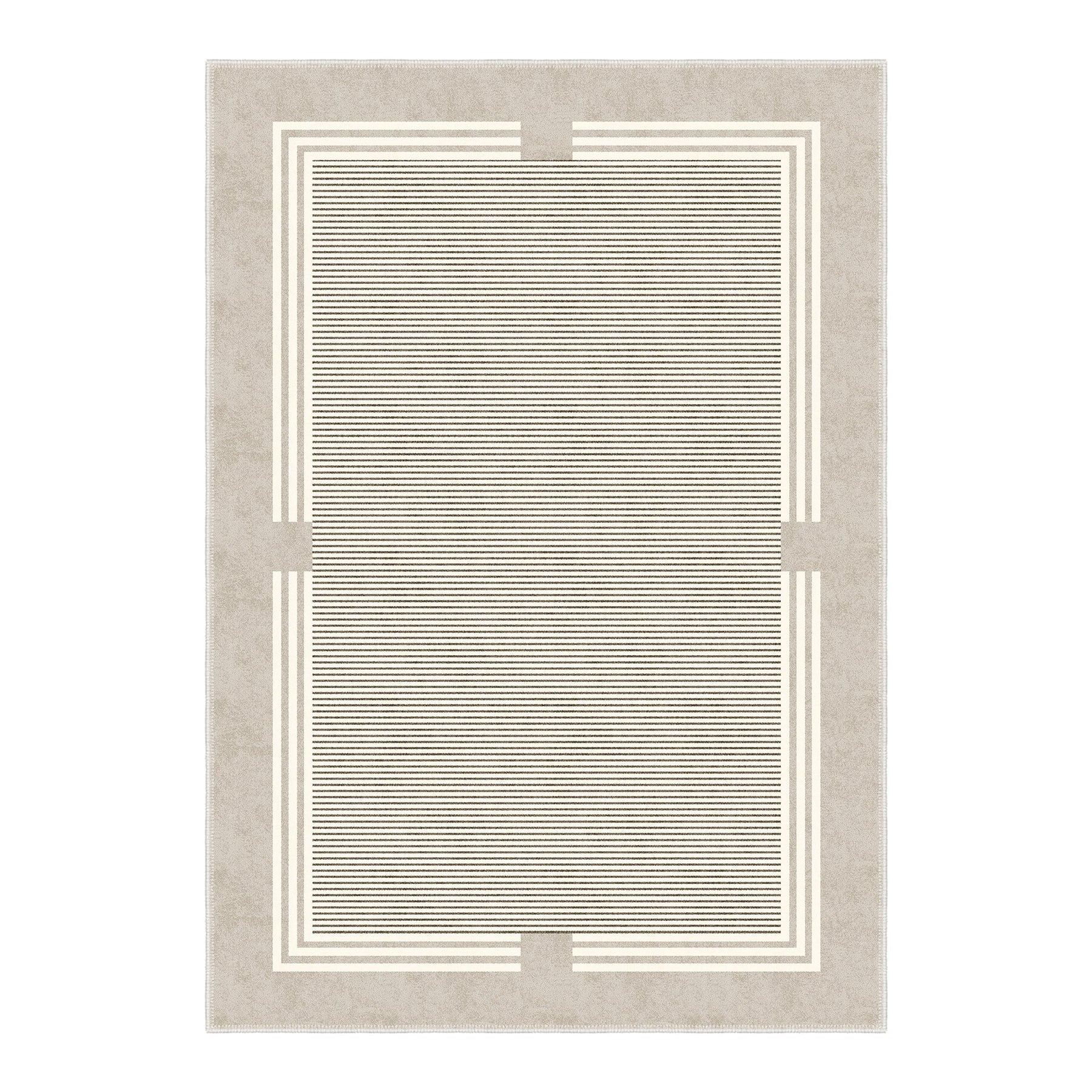 Modern beige cotton area rug featuring contemporary design. Machine washable for effortless maintenance. Durable construction ideal for high-traffic living spaces, bedrooms, and entryways.