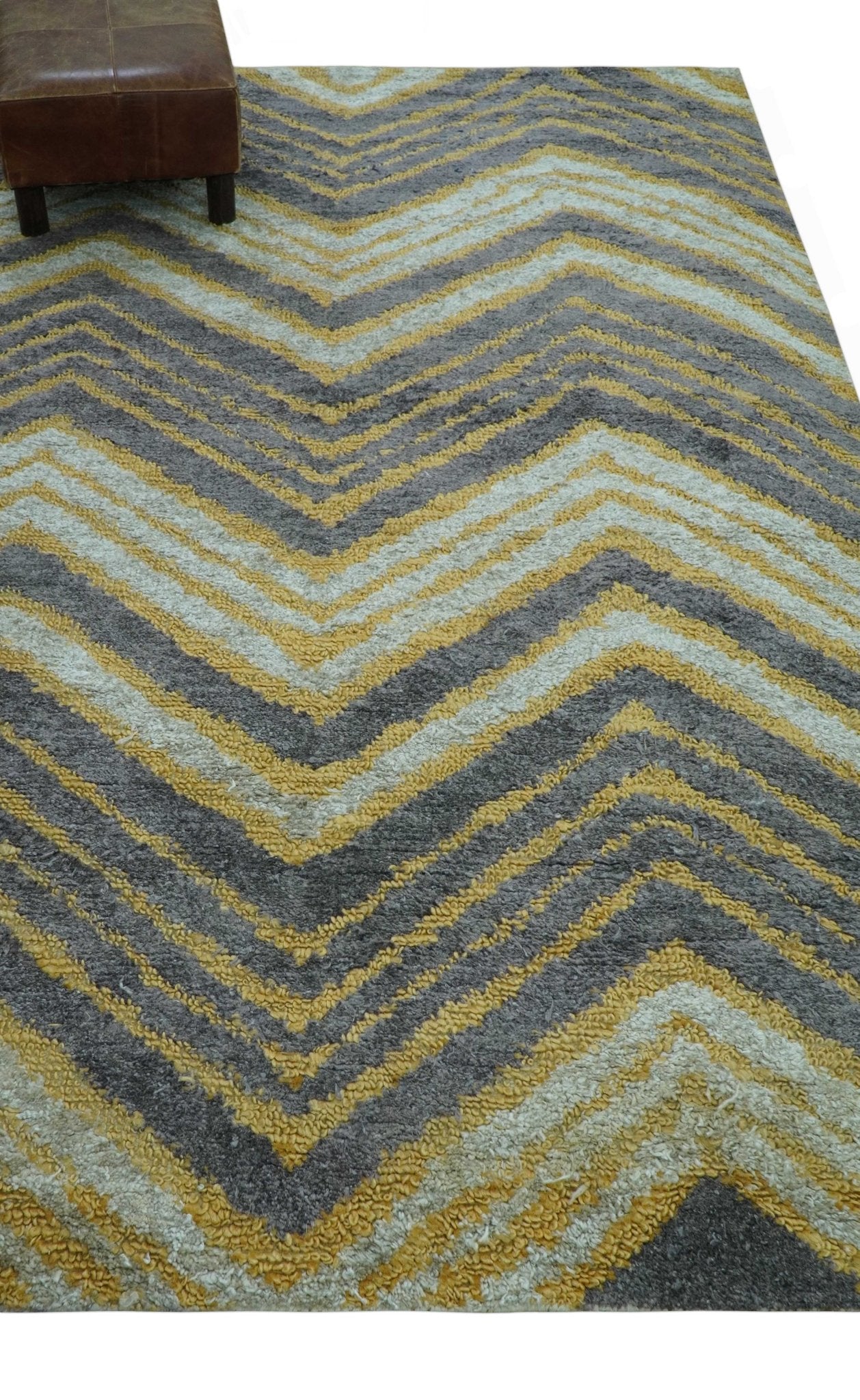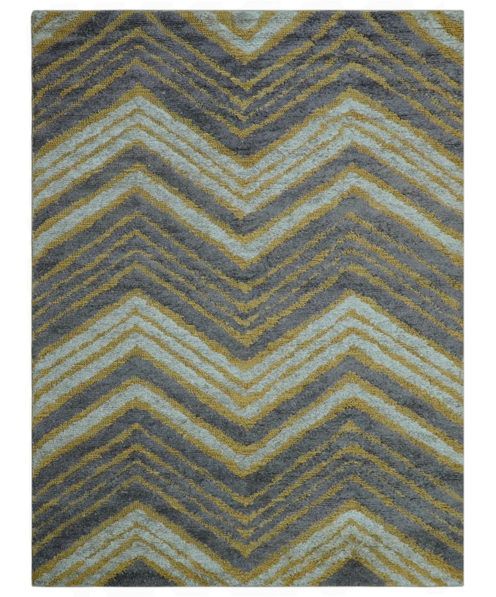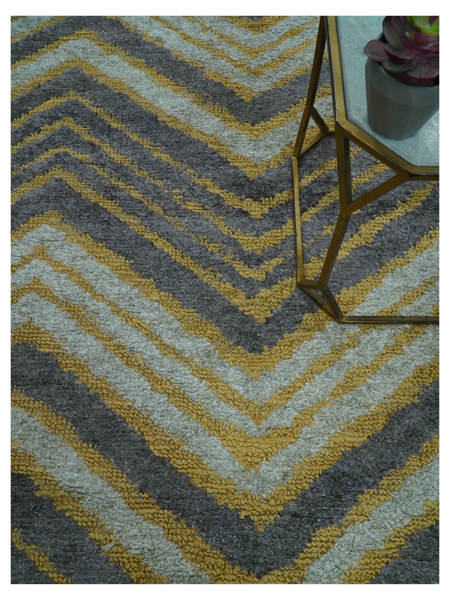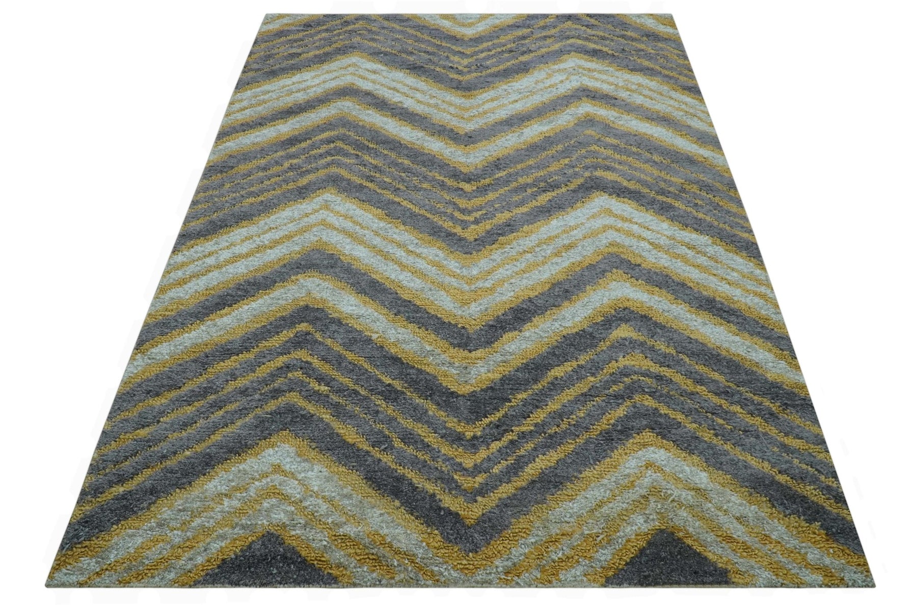 Modern Chevron Design Gold And Beige 5.6x8 Hand Knotted Bamboo Silk Area Rug