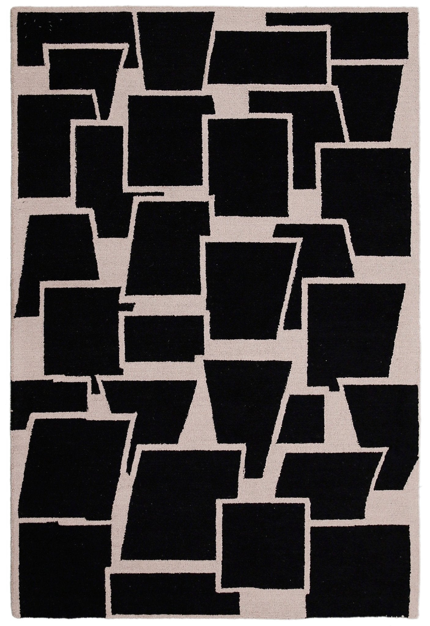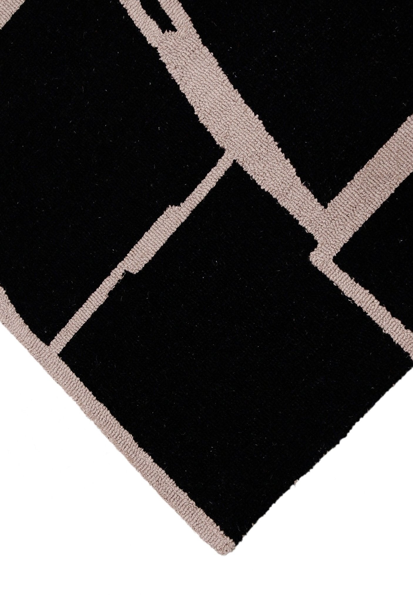 Modern Geometrical Black Hand Tufted Wool Area Rug