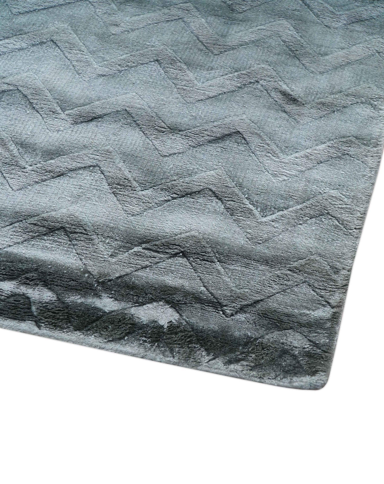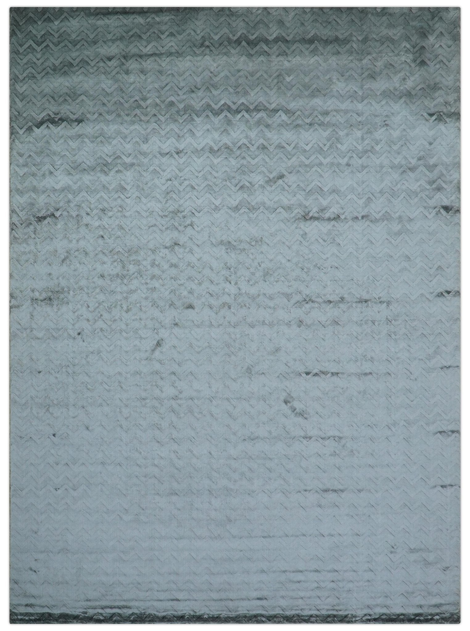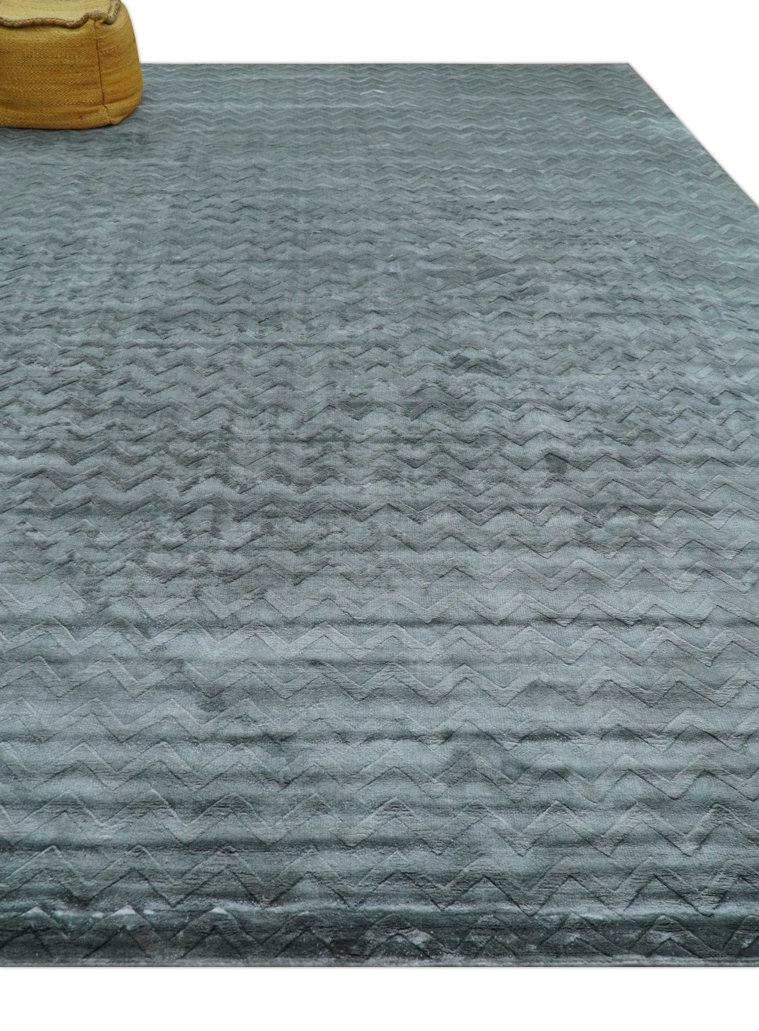 Modern Geometrical Design Dark Teal Hand Loom 9.5x13 Art Silk Area Rug
