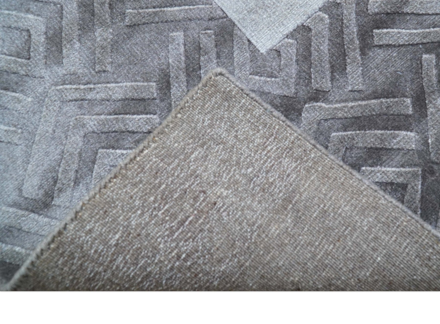 Modern Geometrical Design Silver Hand Loom 10x13 Art Silk Area Rug