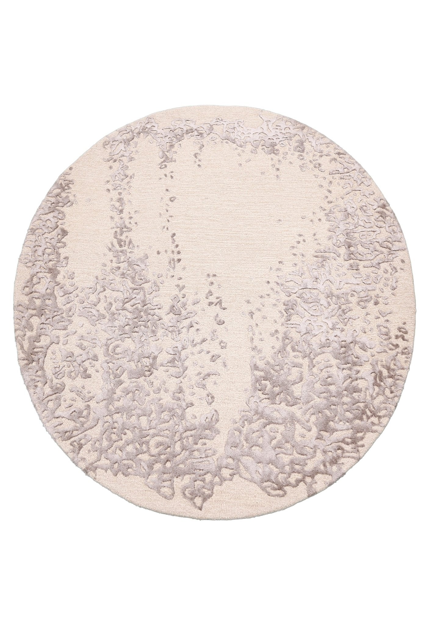 Modern Lace Border Beige Hand Tufted 5x5 Wool Area Rug