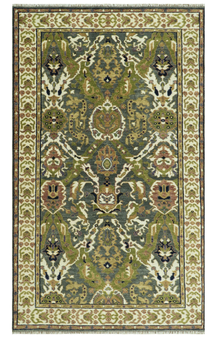 Antique look Hand knotted Green, Ivory and Gray Traditional Large design Multi Size wool Area Rug