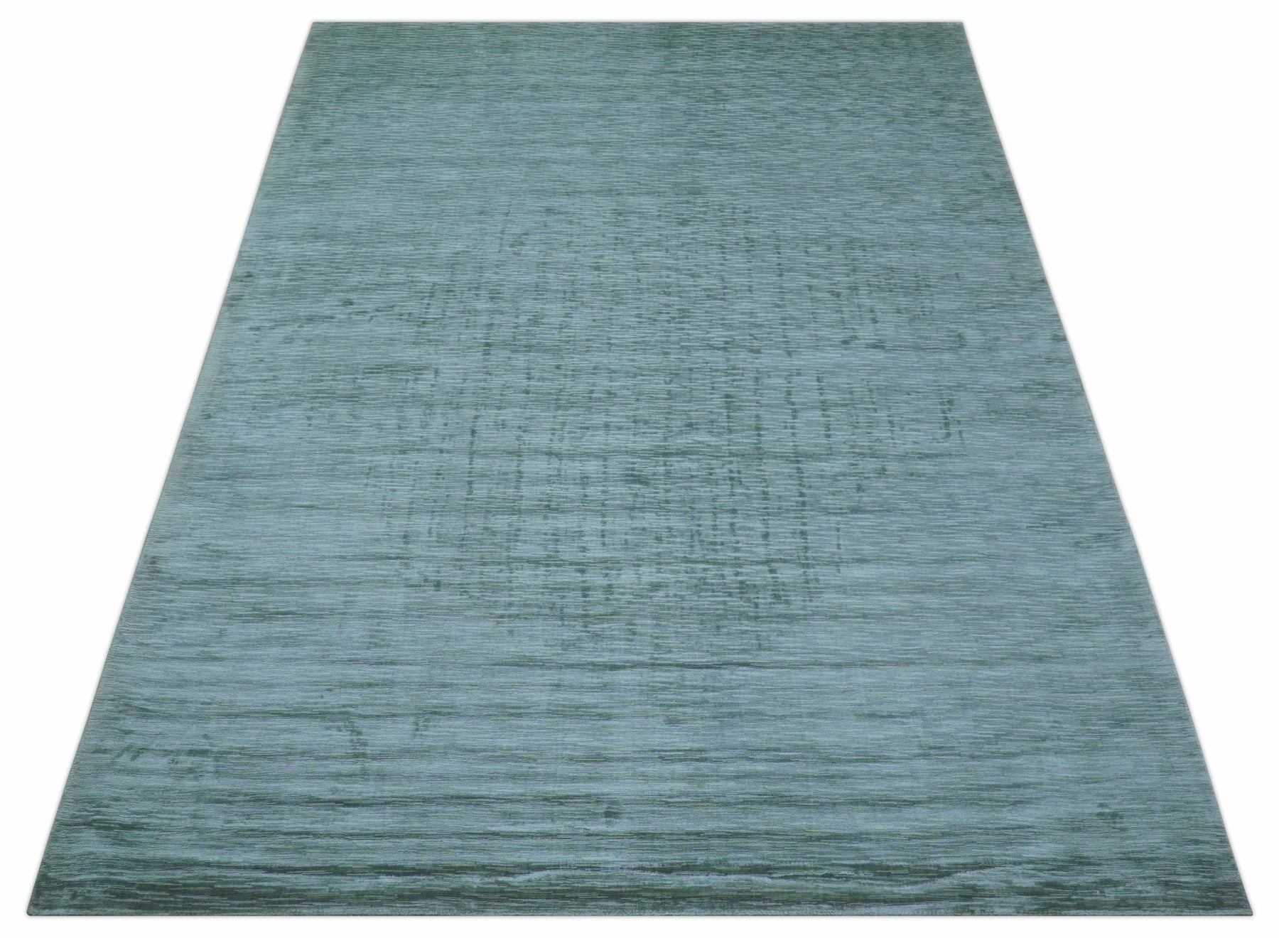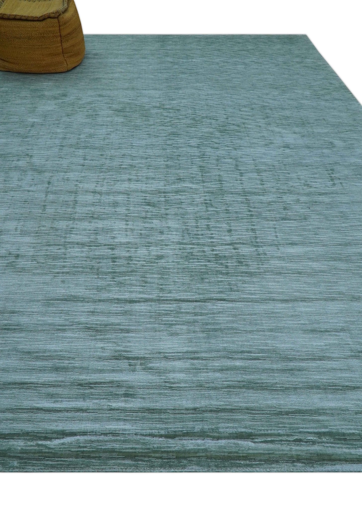 Modern Solid Design Teal Hand Loom 8x11 Art Silk Area Rug