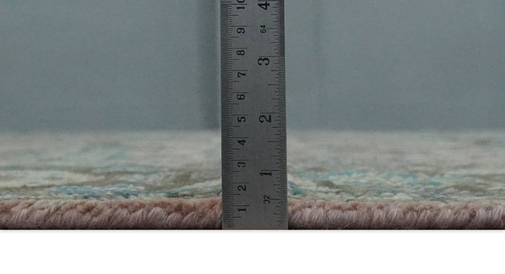 Pink, Beige and Olive Hand knotted Medallion Mamluk Design 8x10 wool Area Rug