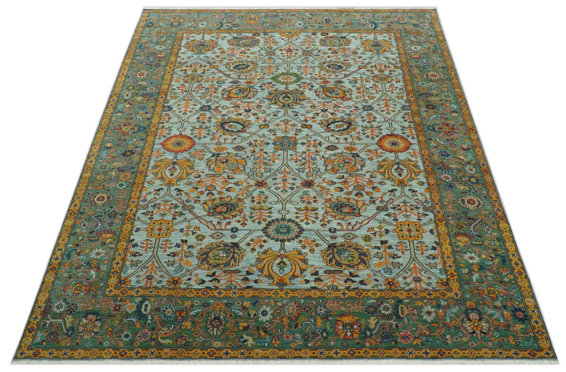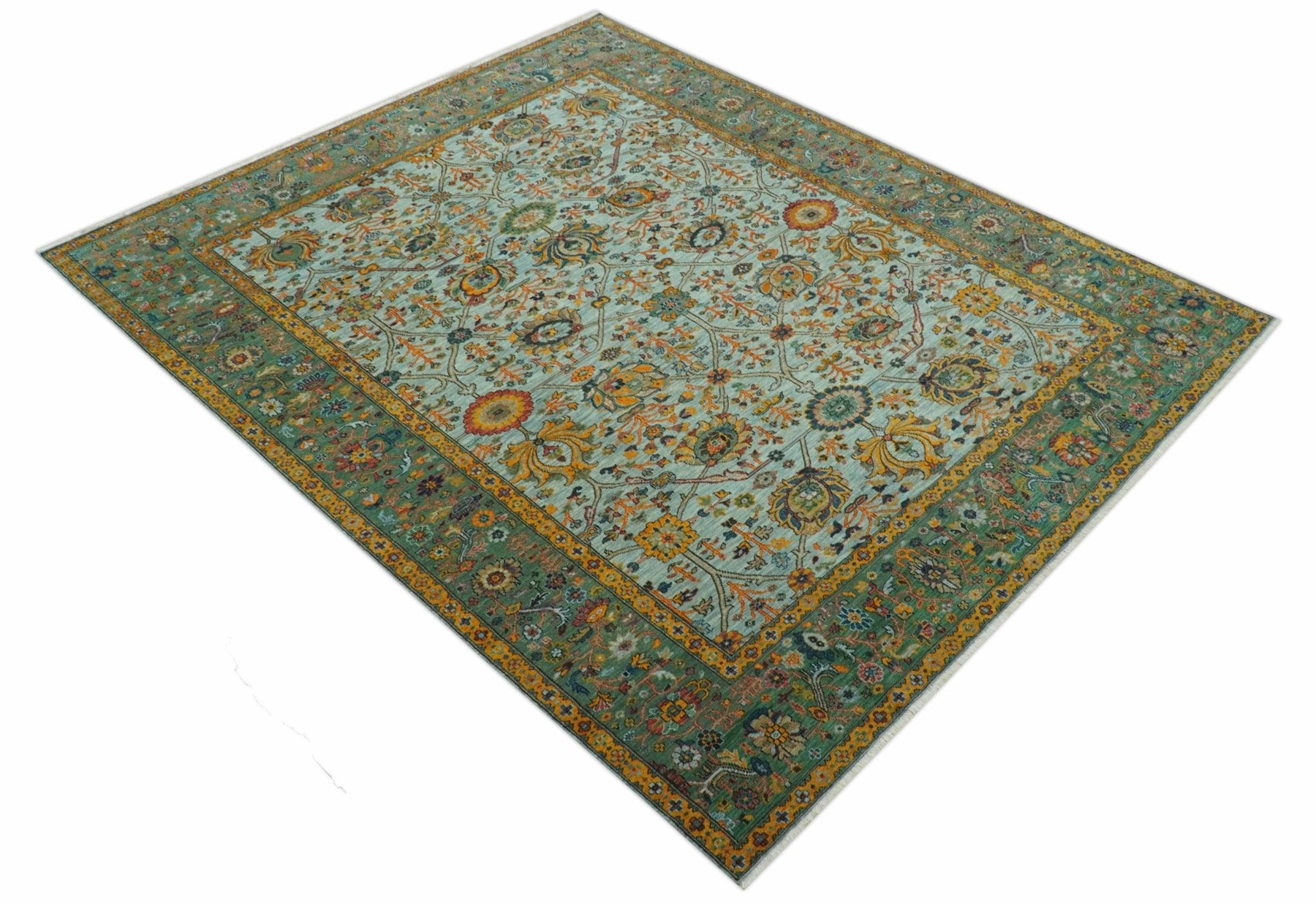 Blue Traditional Turkish knot fine 9.6x12 Hand knotted Wool Area Rug