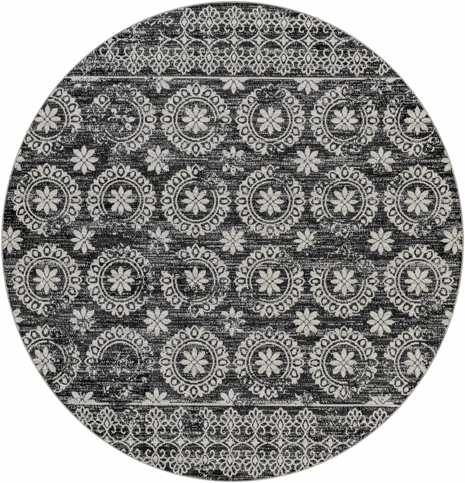 Traditional Charcoal and Ivory Low Pile Washable Area Rug