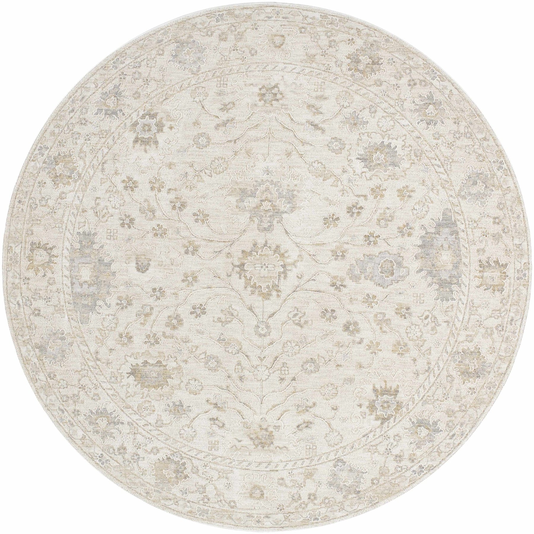 This machine-woven rug showcases intricate traditional floral motifs rendered in refined silver hues. Built for longevity with minimal maintenance requirements, it seamlessly complements classic and contemporary décor. An investment piece that delivers enduring elegance and practical durability.