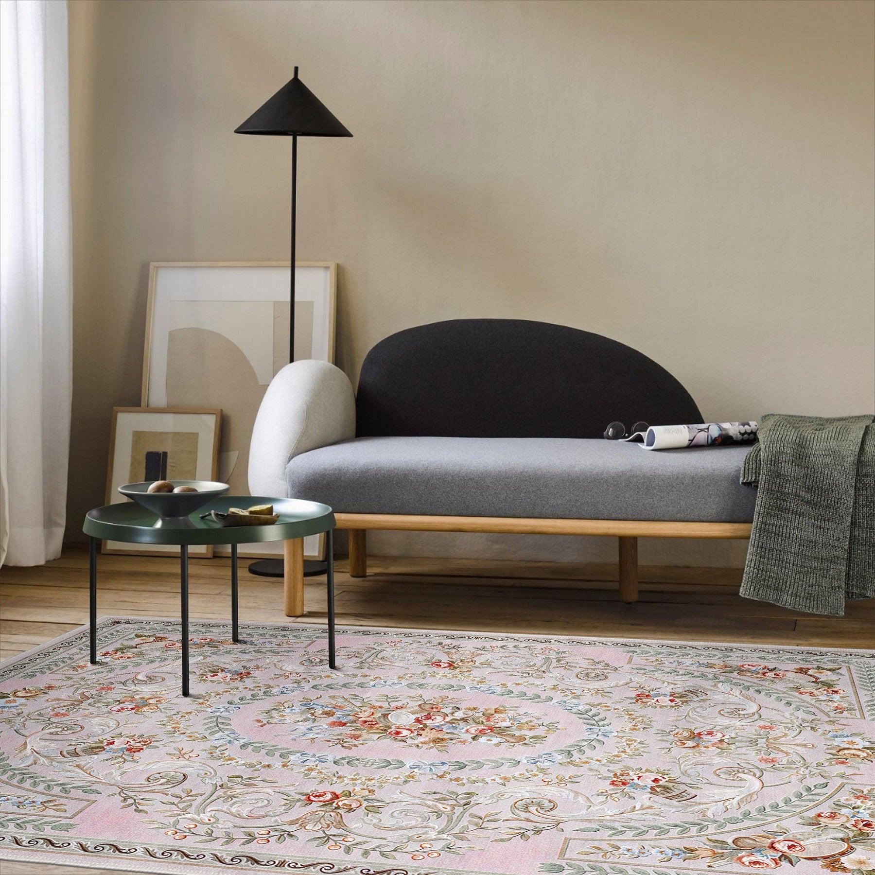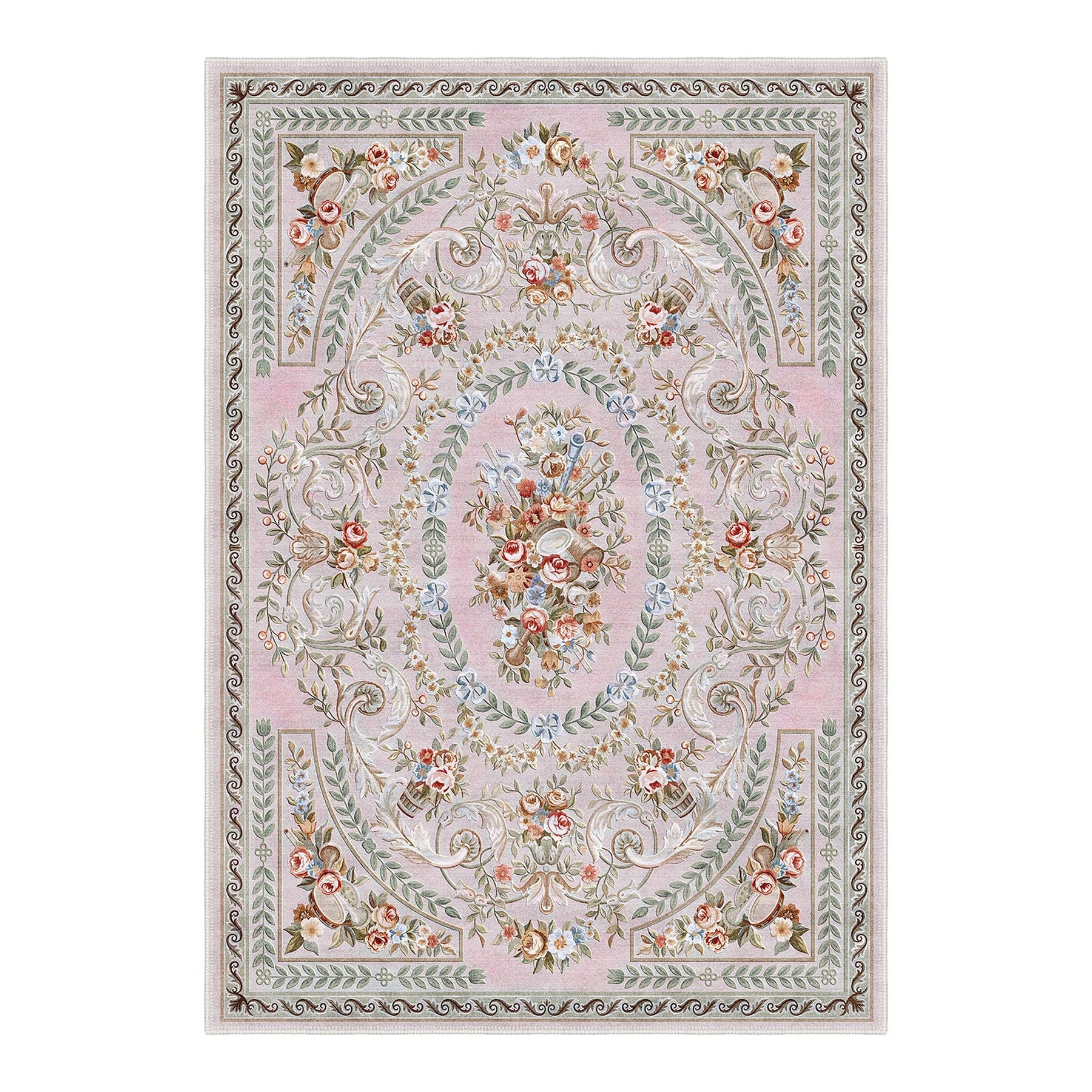 This traditional floral pink cotton area rug combines timeless botanical design with practical functionality. Machine-washable for easy care, its soft texture and rich hues enhance any room's décor. Ideal for living spaces seeking classic elegance with everyday durability.