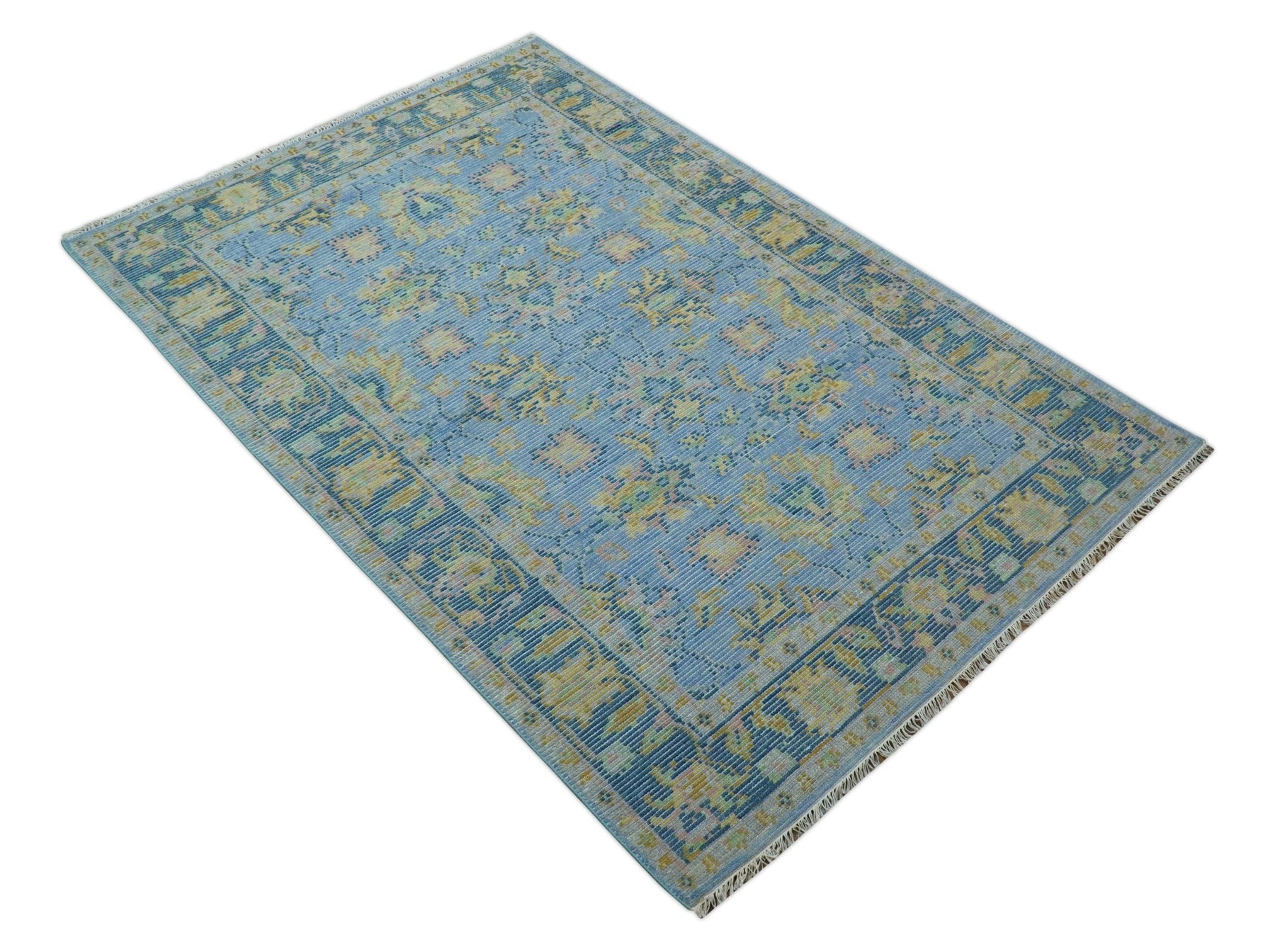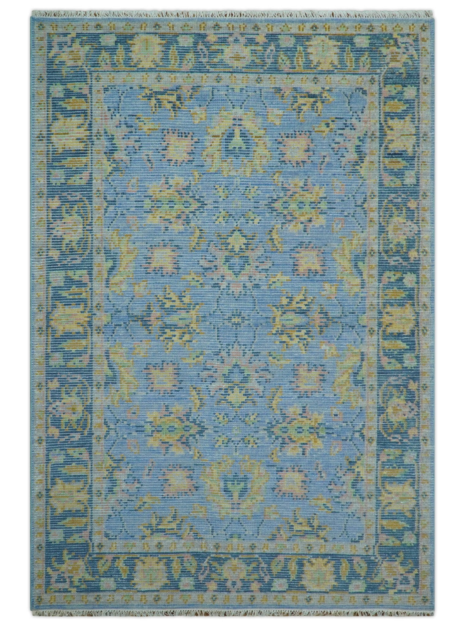 Traditional Oushak Design Blue Hand knotted 6x9 Wool Area Rug