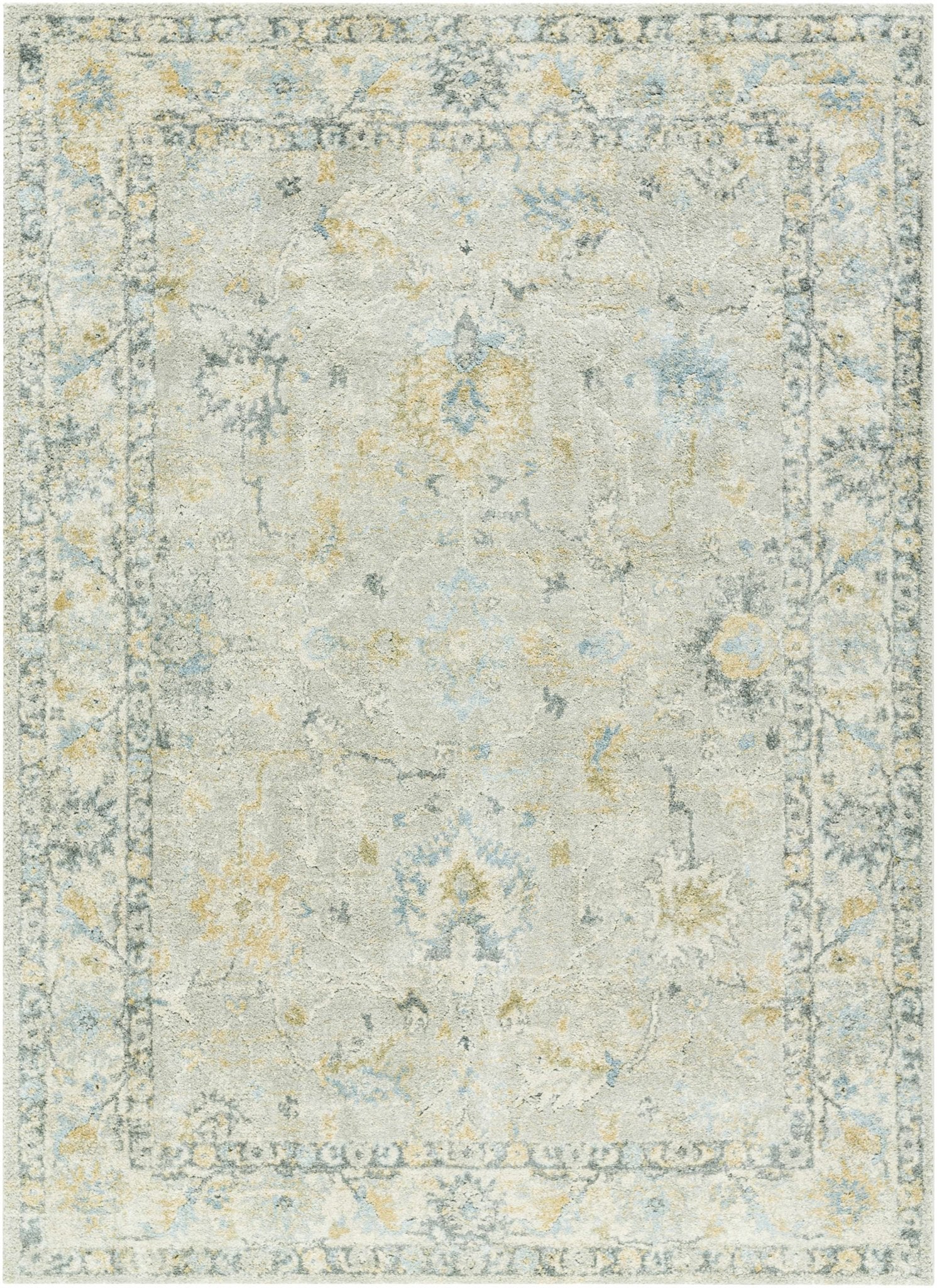 Traditional Oushak Design Gray And Yellow Machine Woven Area Rug
