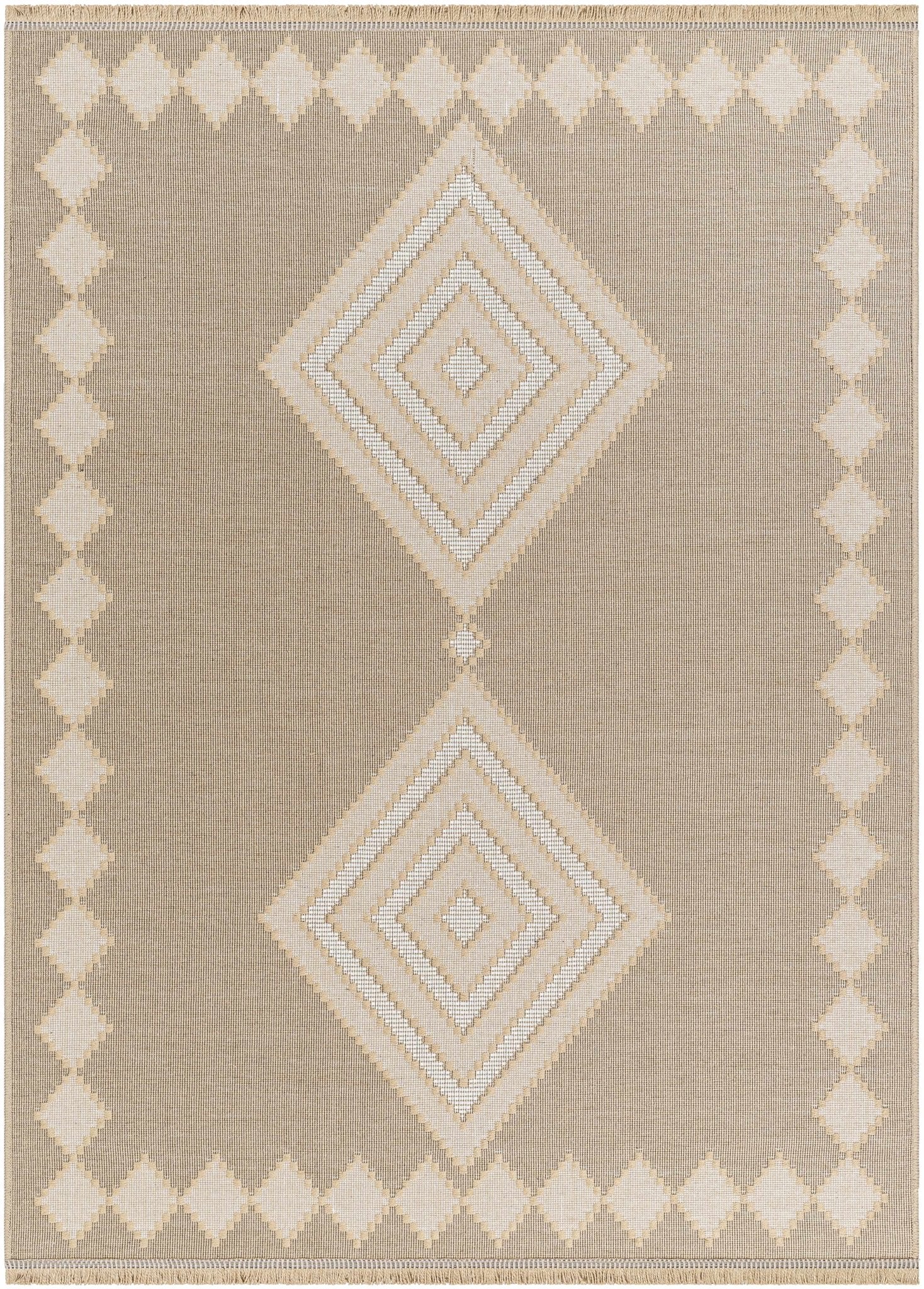 Traditional Style Beige And Tan Jute Rug
