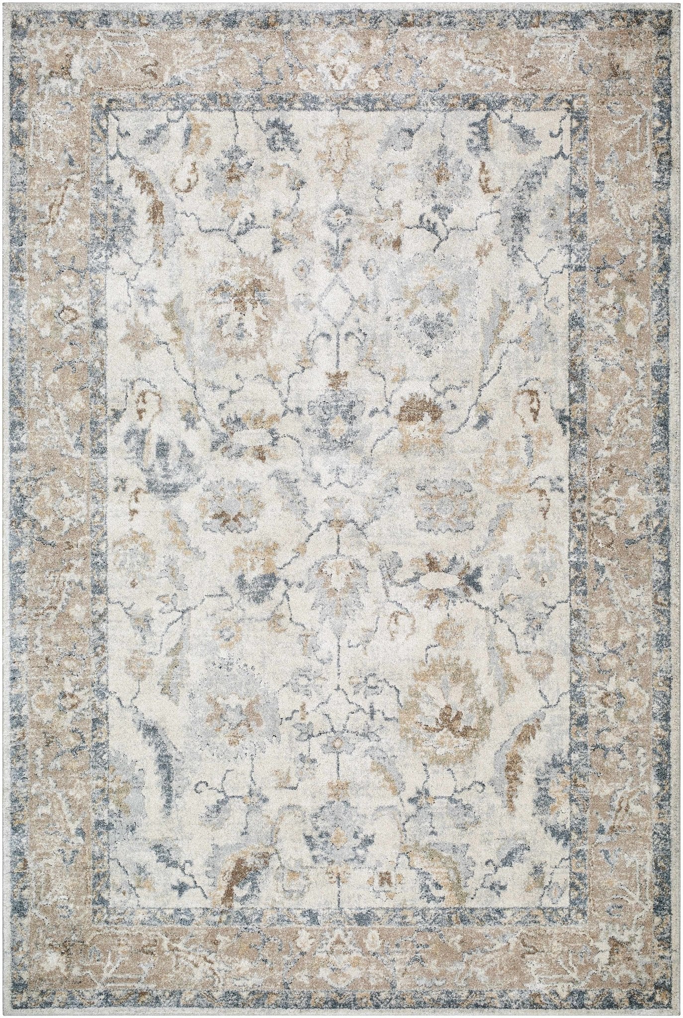 This machine-woven traditional rug features a refined gray and beige color palette that seamlessly integrates into any interior setting. Built for longevity with robust construction, it resists wear from high-traffic areas. Perfect for establishing sophisticated ambiance in living spaces, bedrooms, or entryways with enduring style. Collection: Uriel |