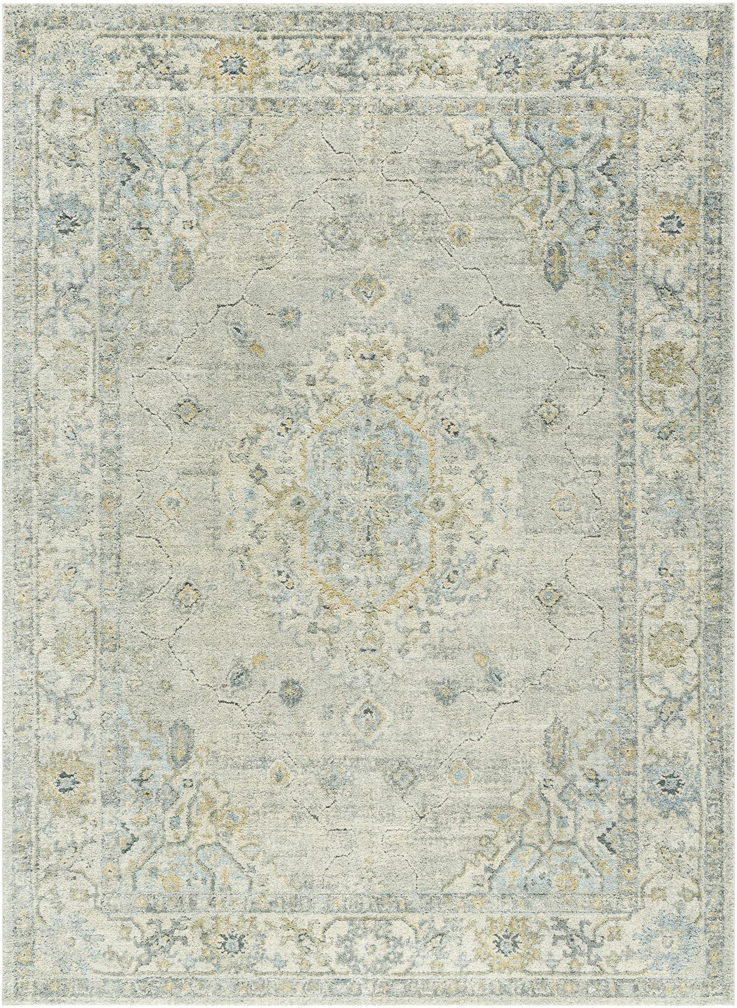 This traditional gray machine-woven area rug combines timeless design with practical durability. The neutral gray tone seamlessly integrates into any interior aesthetic, while precision machine weaving ensures consistent quality and longevity. An ideal foundation piece for sophisticated home styling. Collection: Tyche |