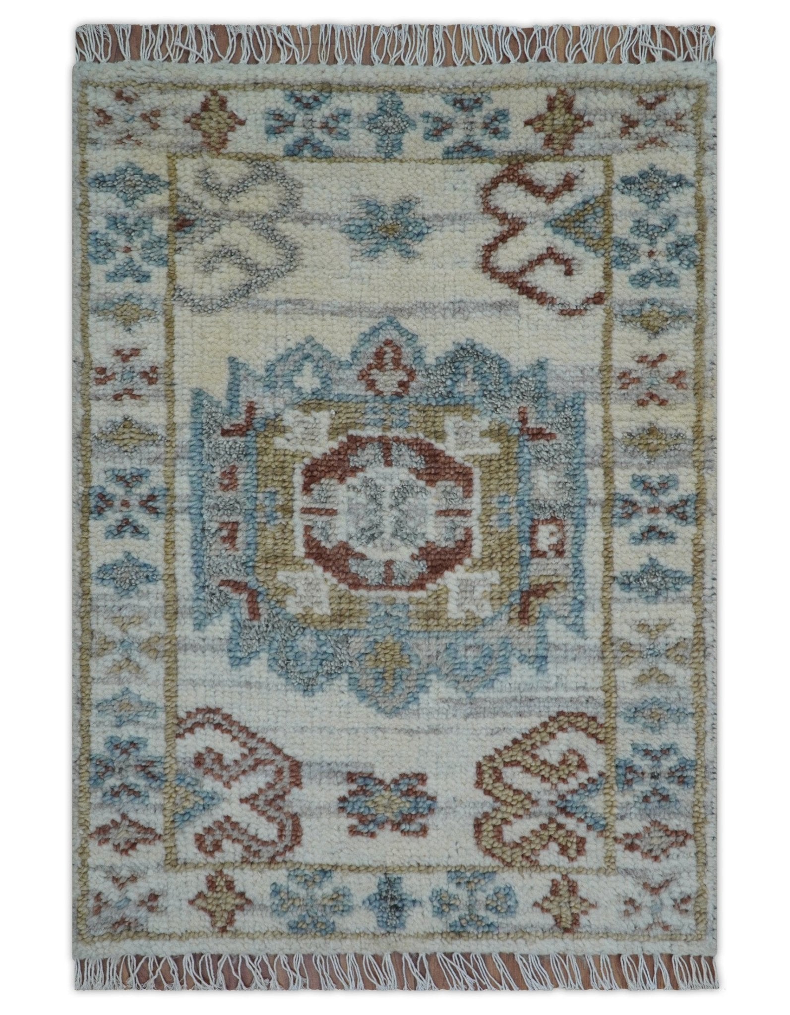 Traditional Design Ivory Hand knotted 2x3 Wool Area Rug
