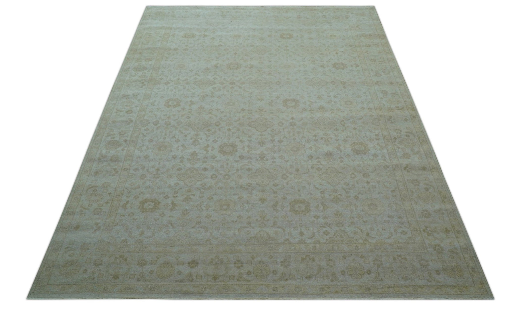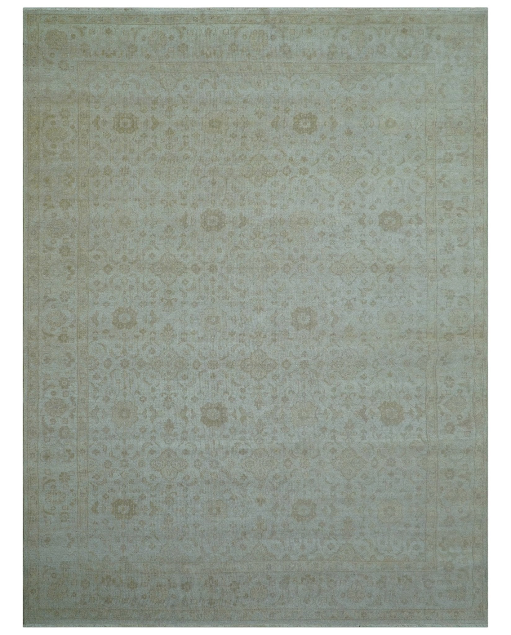 Traditional Turkish Design Beige Hand Knotted 9x12 Wool Area Rug